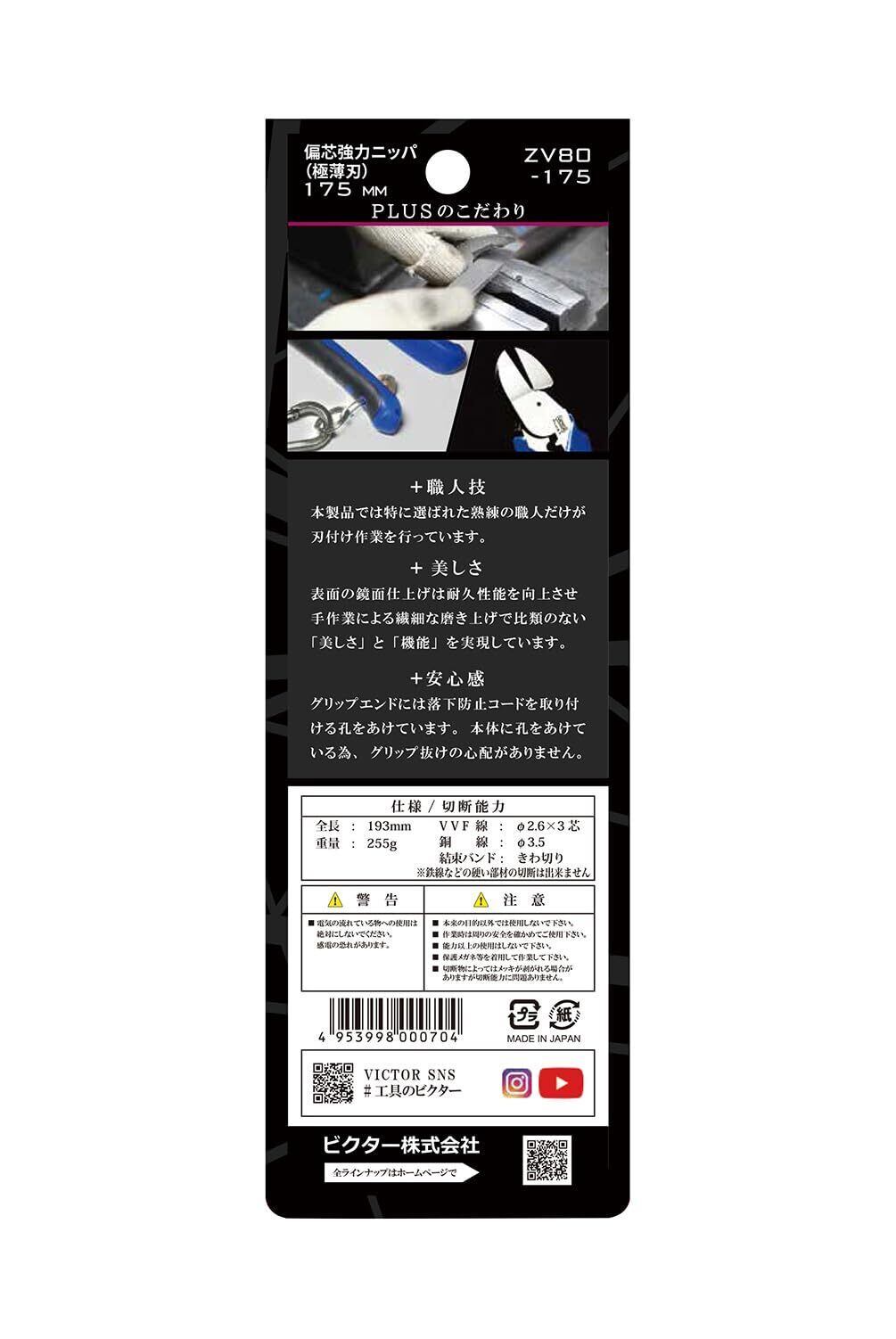 ビクター VICTOR PLUS+ 偏芯強力ニッパ(薄刃)/175mm/ホンモノの職人が細部までこだわり抜いた至極の逸品/[ZV80-175]