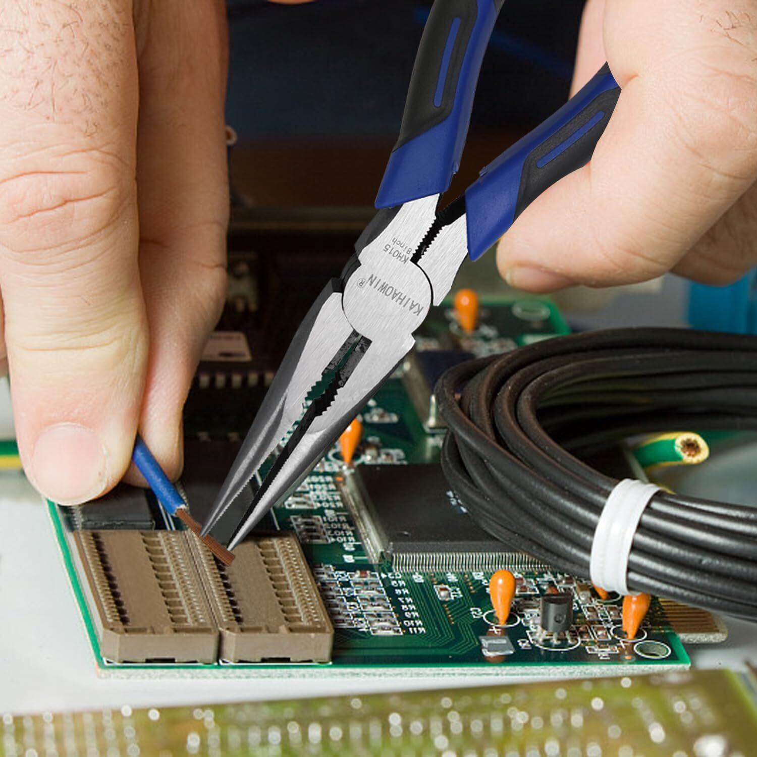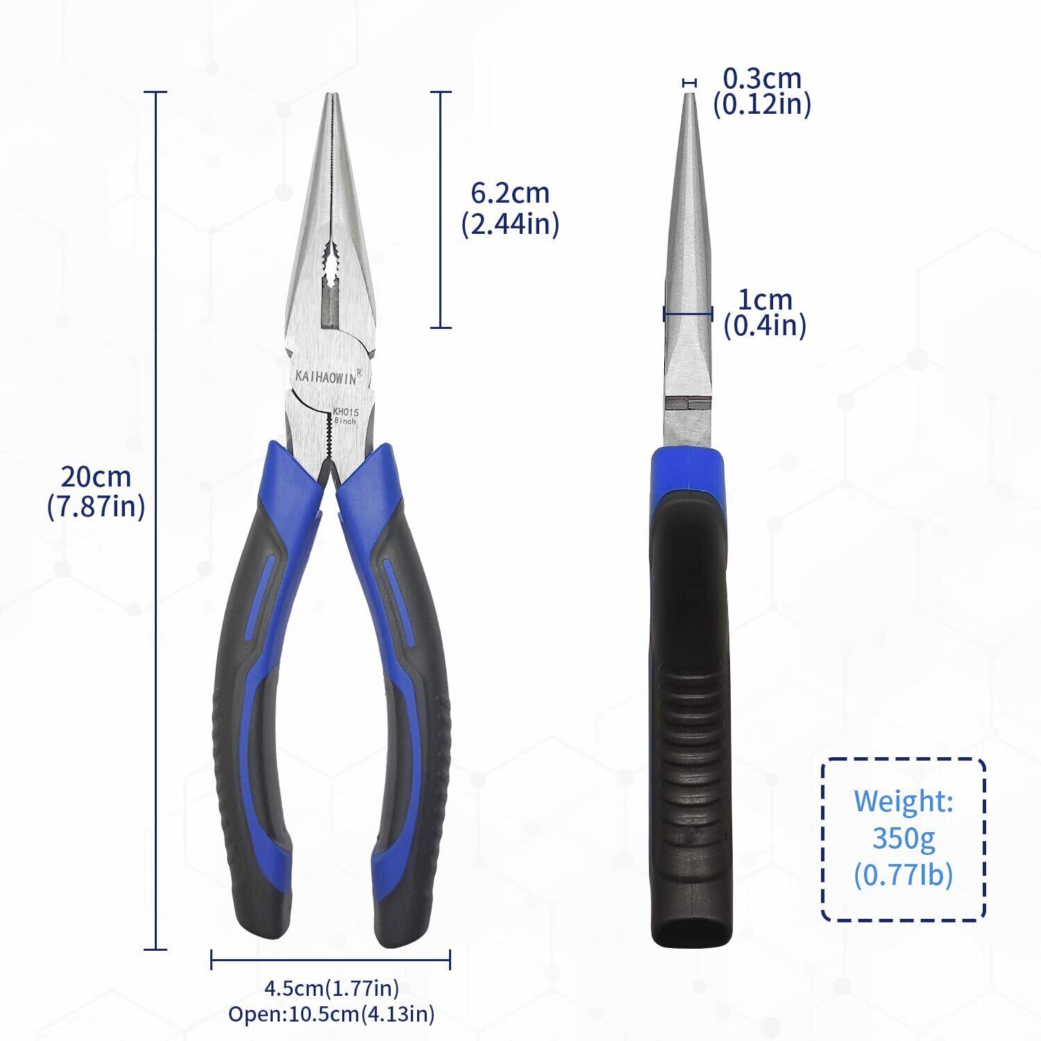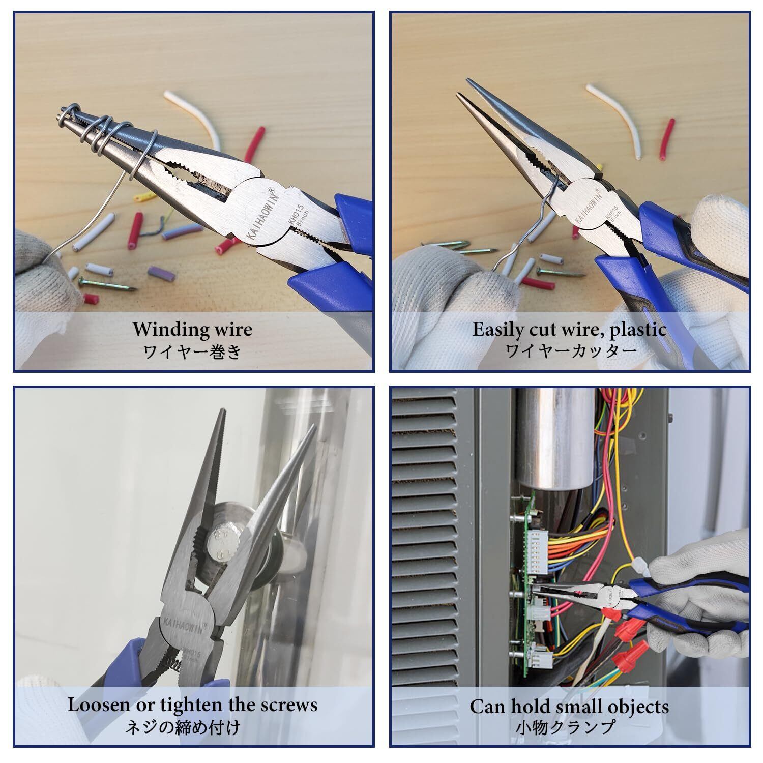 KAIHAOWIN 200mm ラジオペンチ 先細ラジオペンチ 強力 ワイヤーカッター 万能ラジオペンチ ばね付き 先長プライヤー 多機能 電工 工具