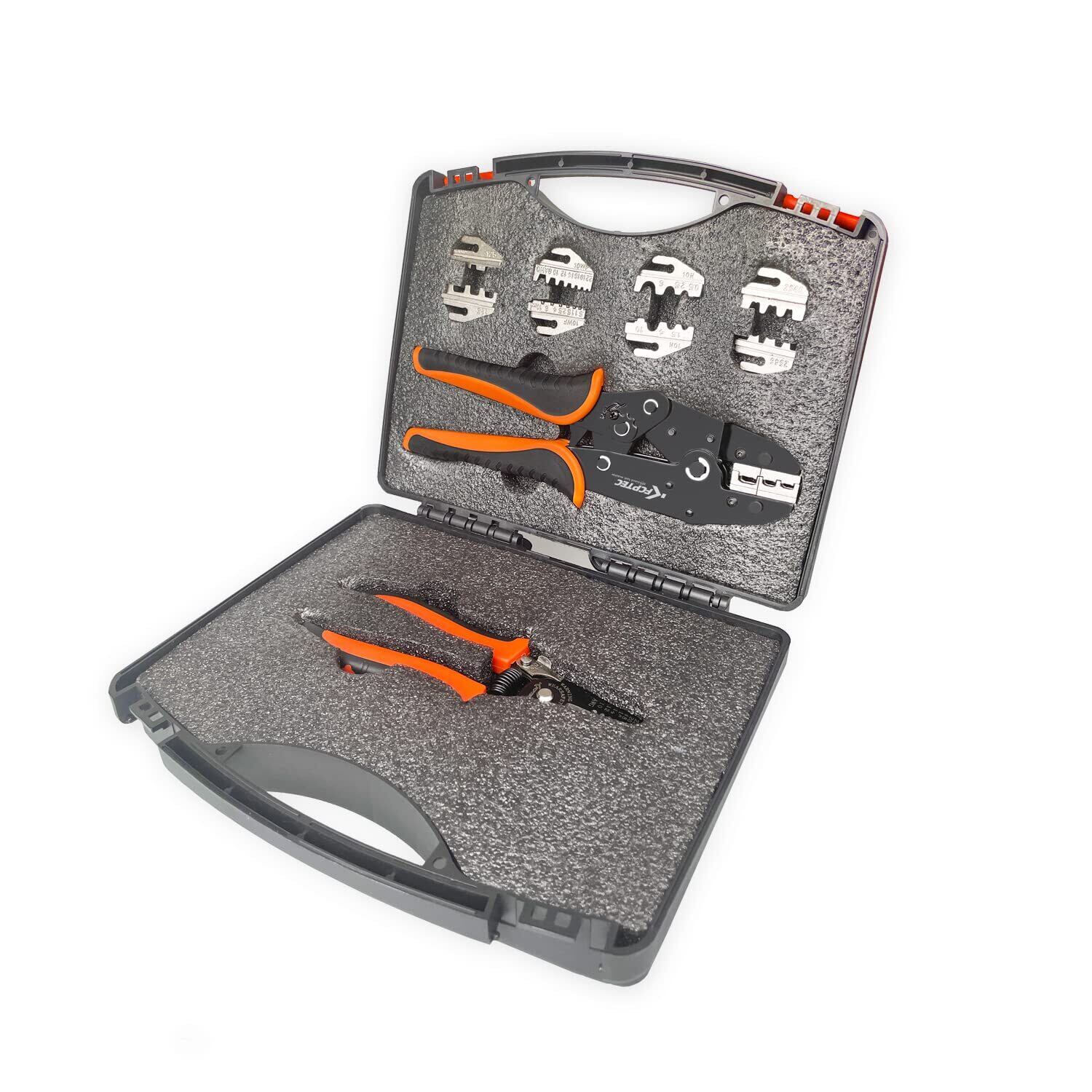 7 点の多目的圧着キットには、ワイヤー圧着ペンチ 1 個、多目的ワイヤーストリッパー 1 個、交換用ジョー (10WF、10N、125、03C、2546B)、およびカスタム収納ボックス 1 個が含まれます。