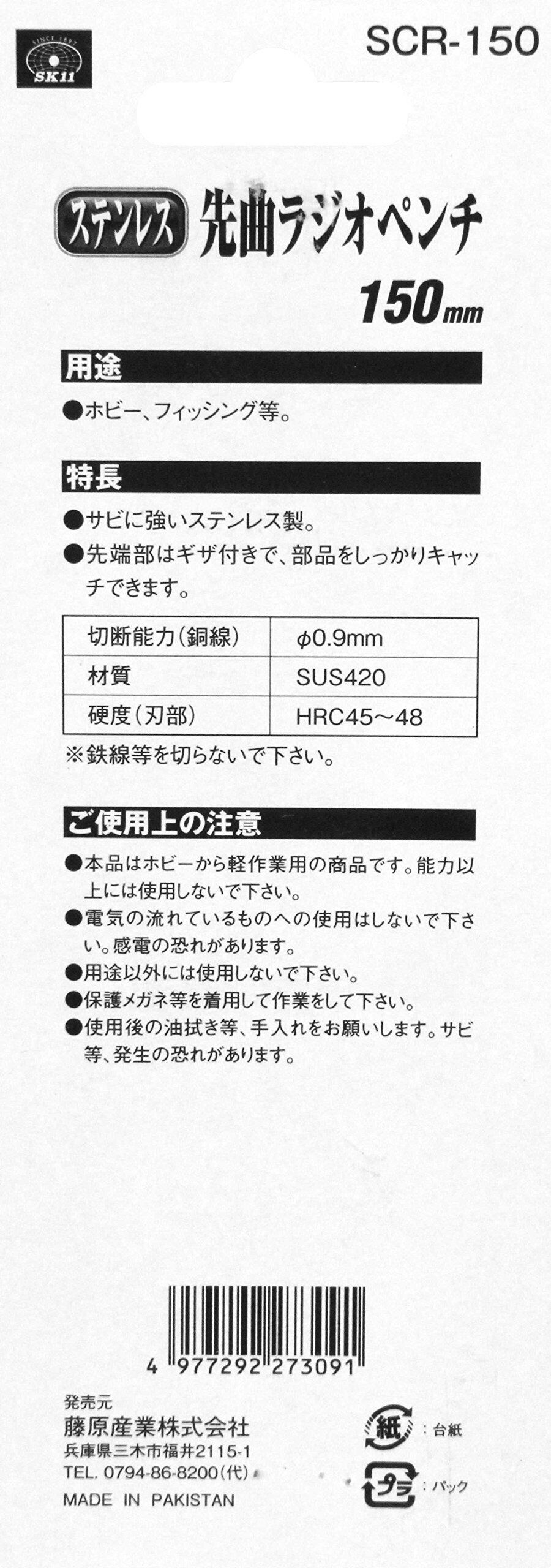 SK11(エスケー11) ステンレス製 先曲ラジオペンチ 先端ギザ付 SCR-150