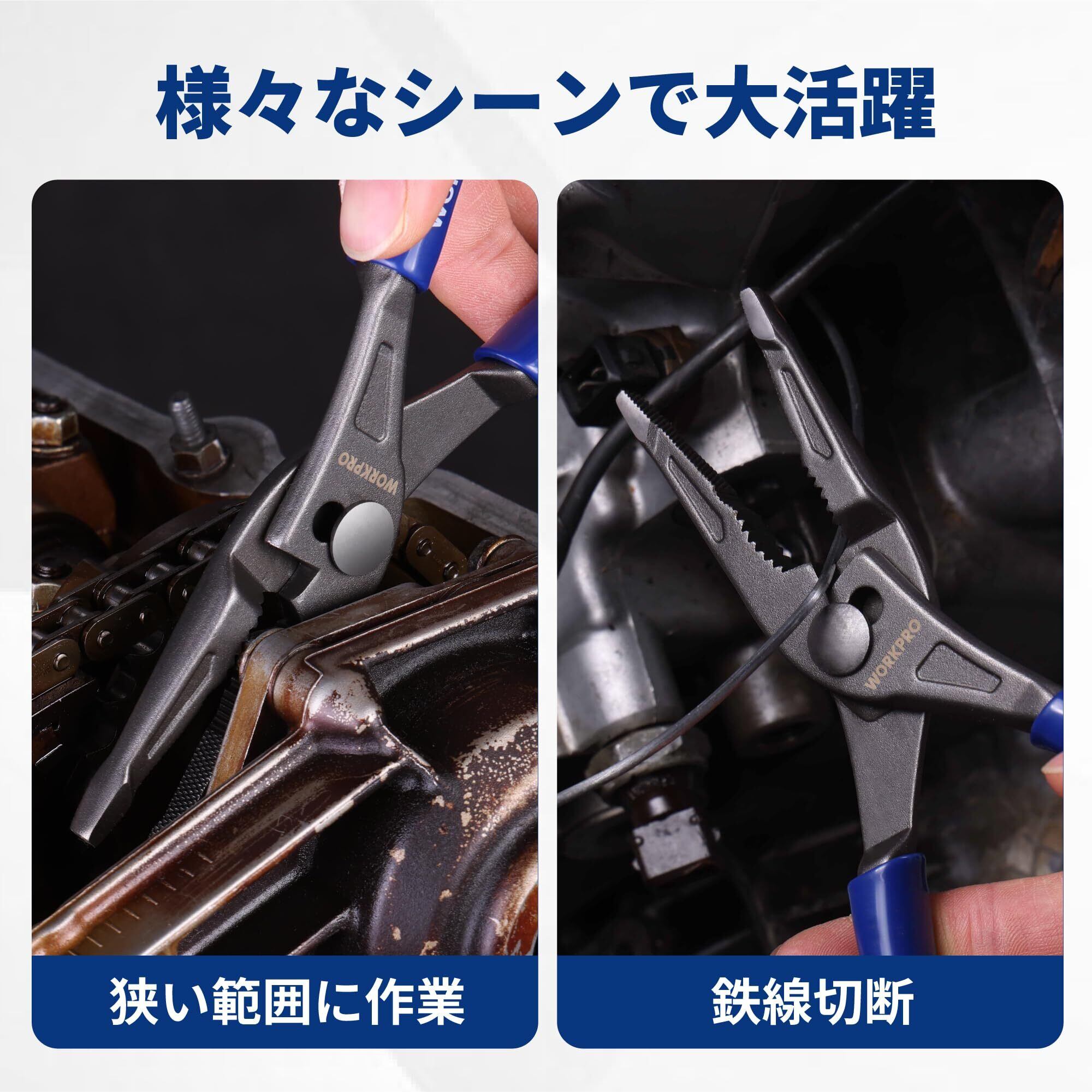 WORKPRO ペンチ ラジオペンチ コンビネーションプライヤー スリップジョイントプライヤー ワイヤーカッター 2段階調節 全長205mm 家庭修理 作業工具 DIY 手作り
