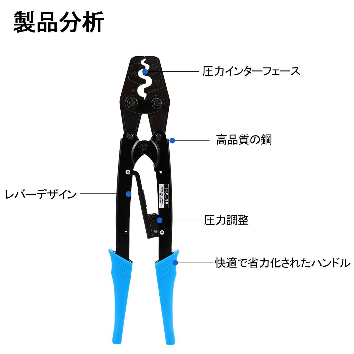 Odowalker 圧着ペンチ 圧着電工ペンチ 裸圧着端子かしめ工具 裸圧着スリーブ 圧着工具 圧着端子 電工ペンチ ペンチ 対応 HS-38/5.5-38㎟