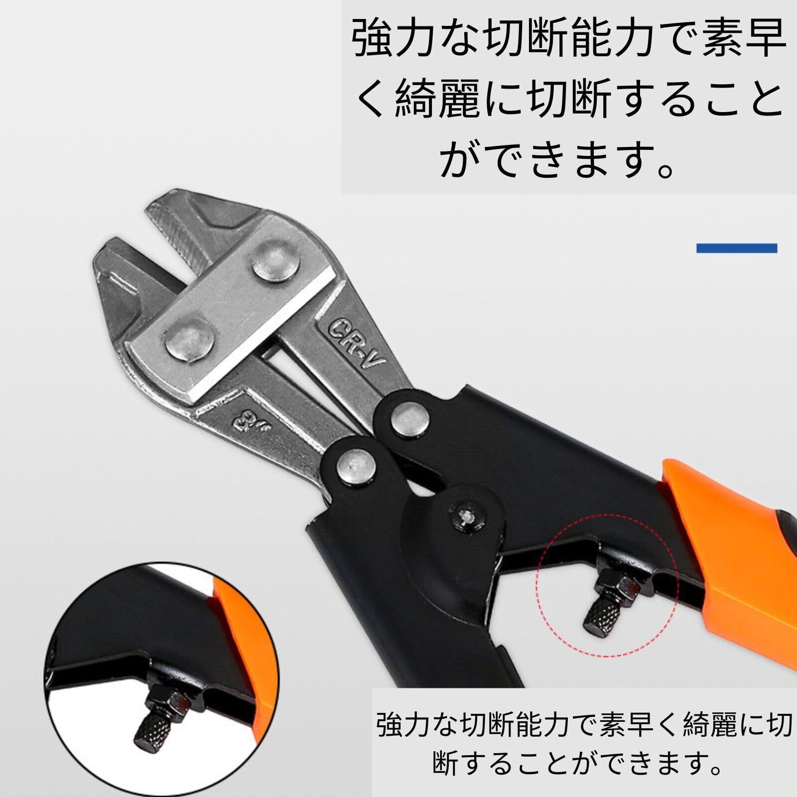 高性能切断力: 自転車、硬鋼線、ボルト、番線などの切断に優れたパフォーマンスを発揮します。強力な切断能力で素早く綺麗に切断することができます。