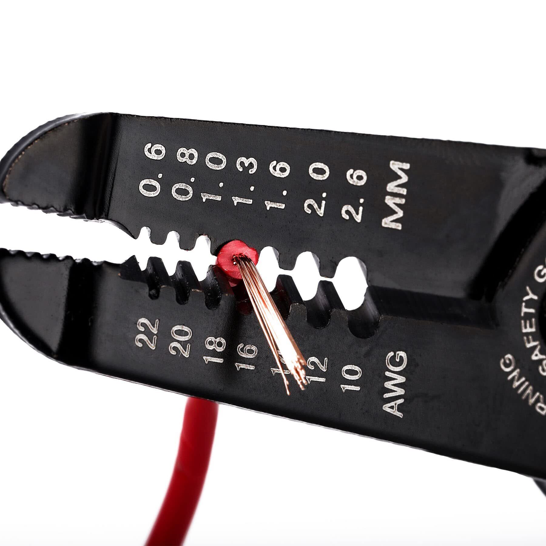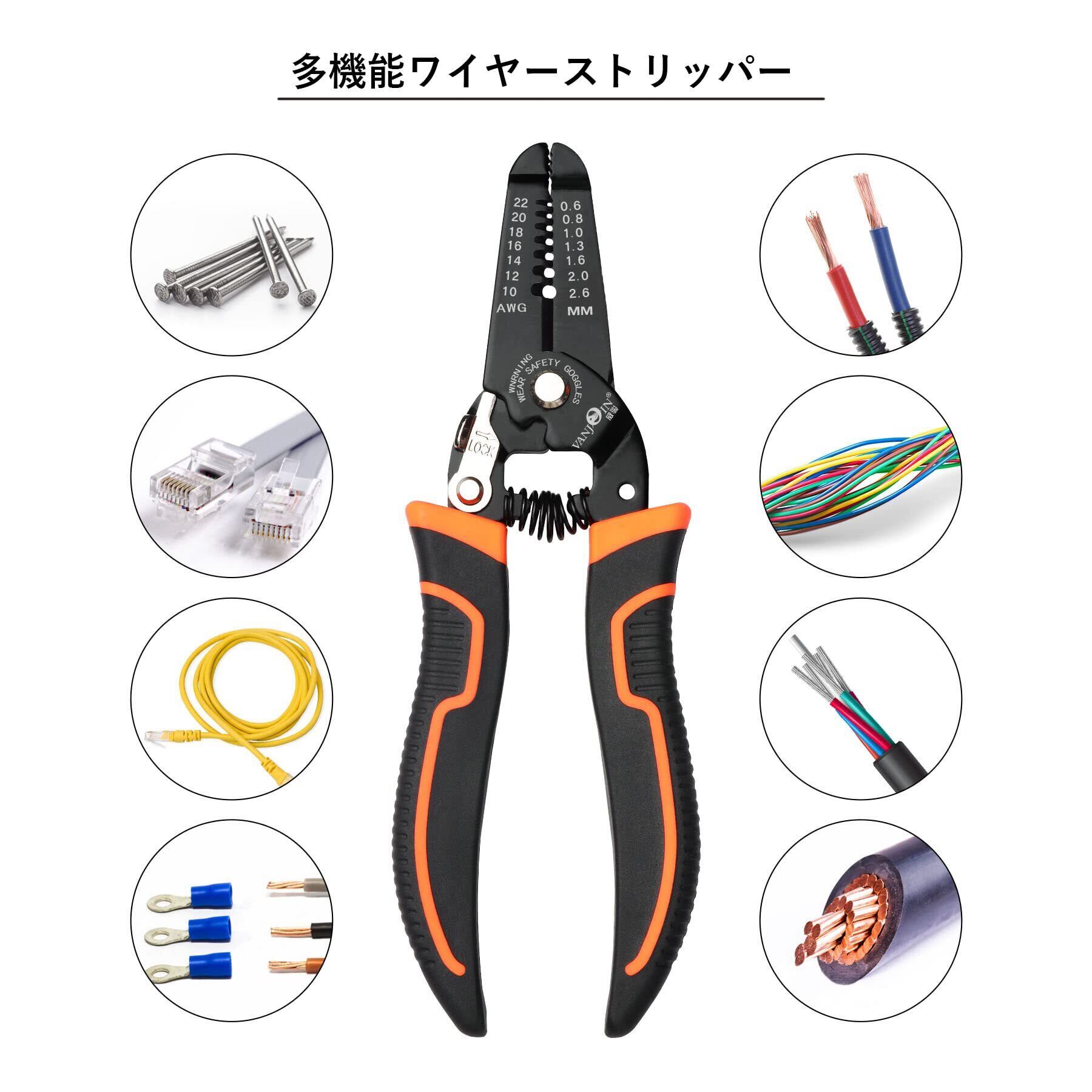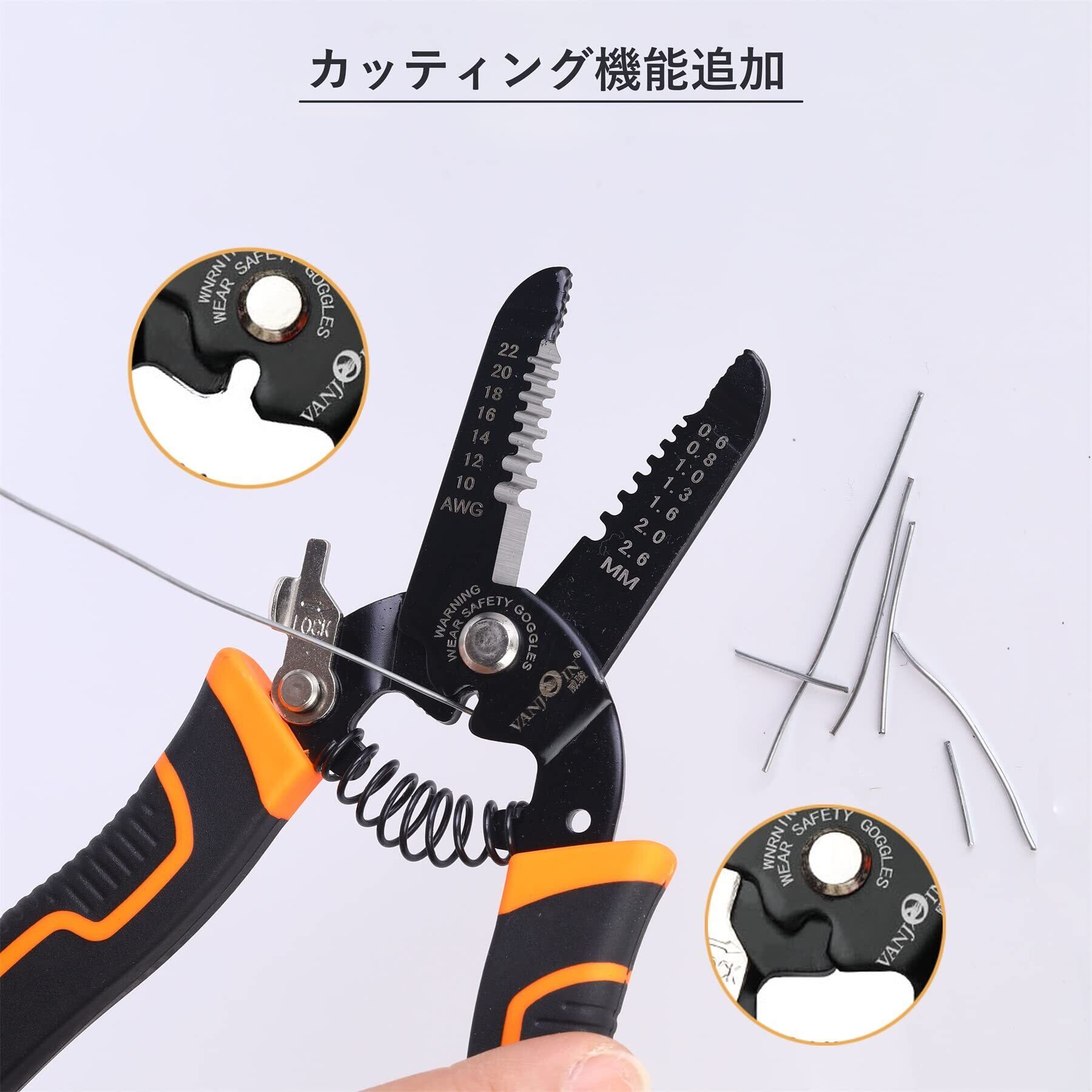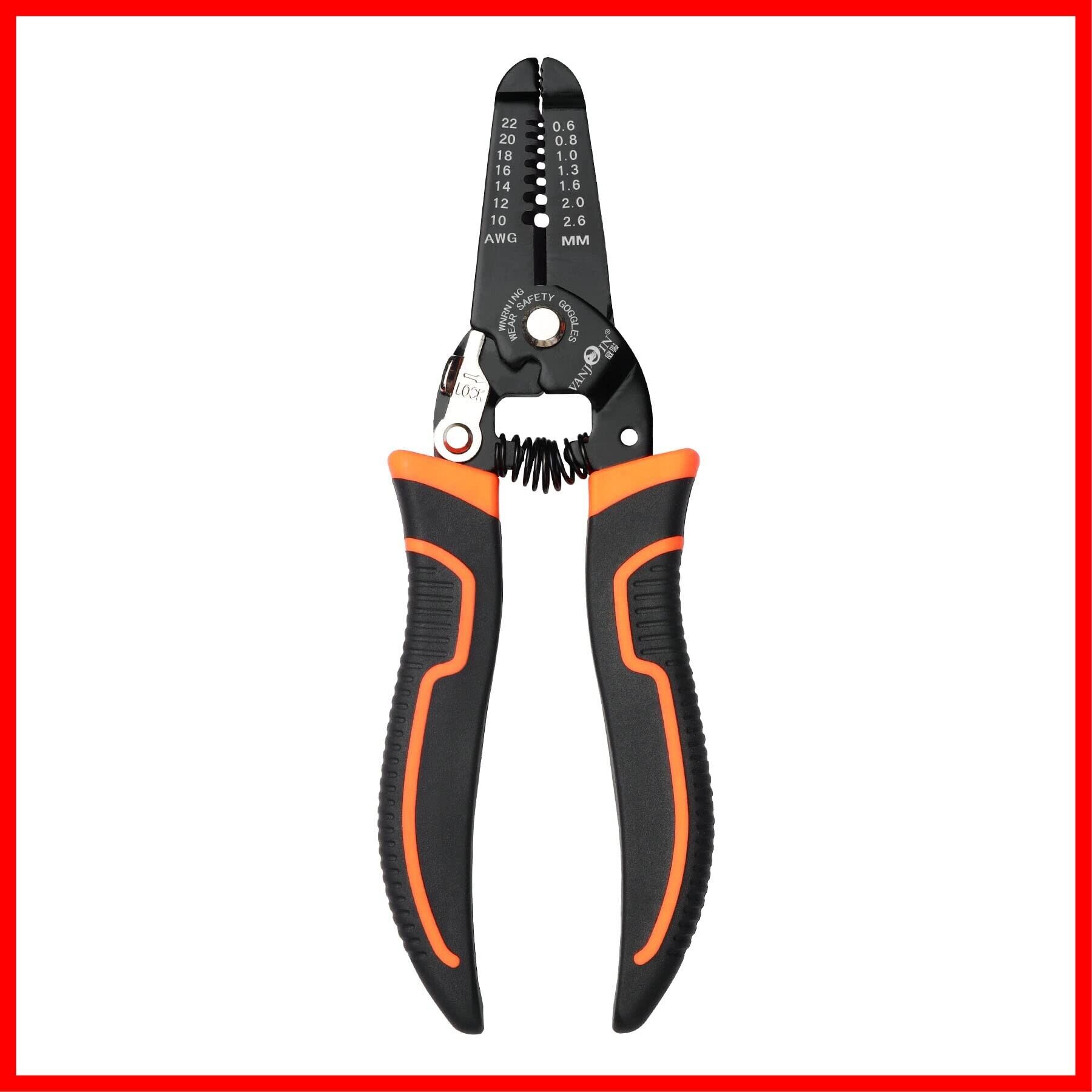 VANJOIN ワイヤーストリッパー ハンドツール 0.6-2.6mm(22-10AWG)用 銅線ストリッパー プロ仕様のノンスリップグリップと耐久性のあるスチール製ジョーを備えた多機能ワイヤーストリッパー (ワイヤーストリッパー)