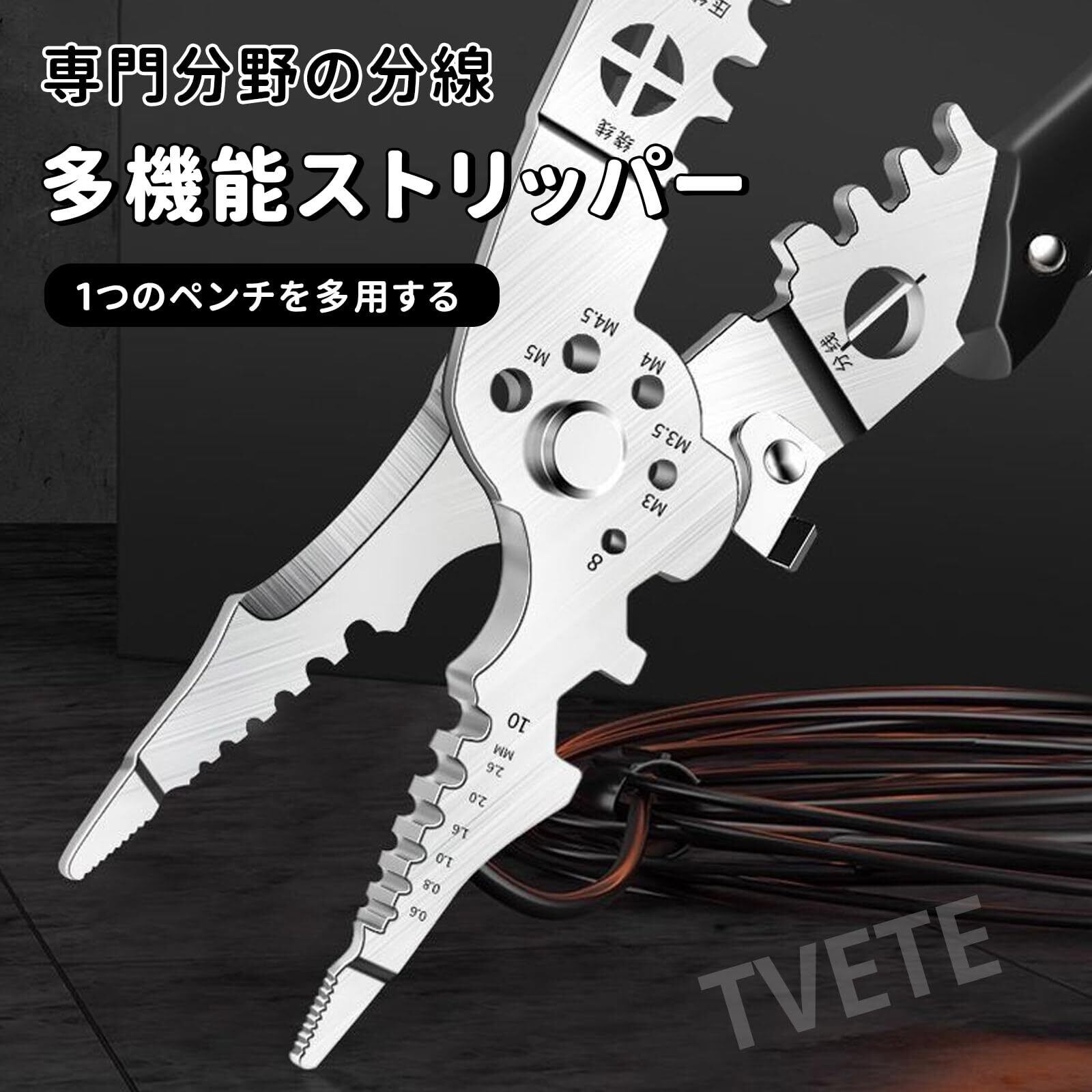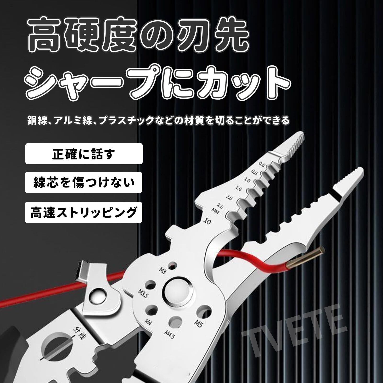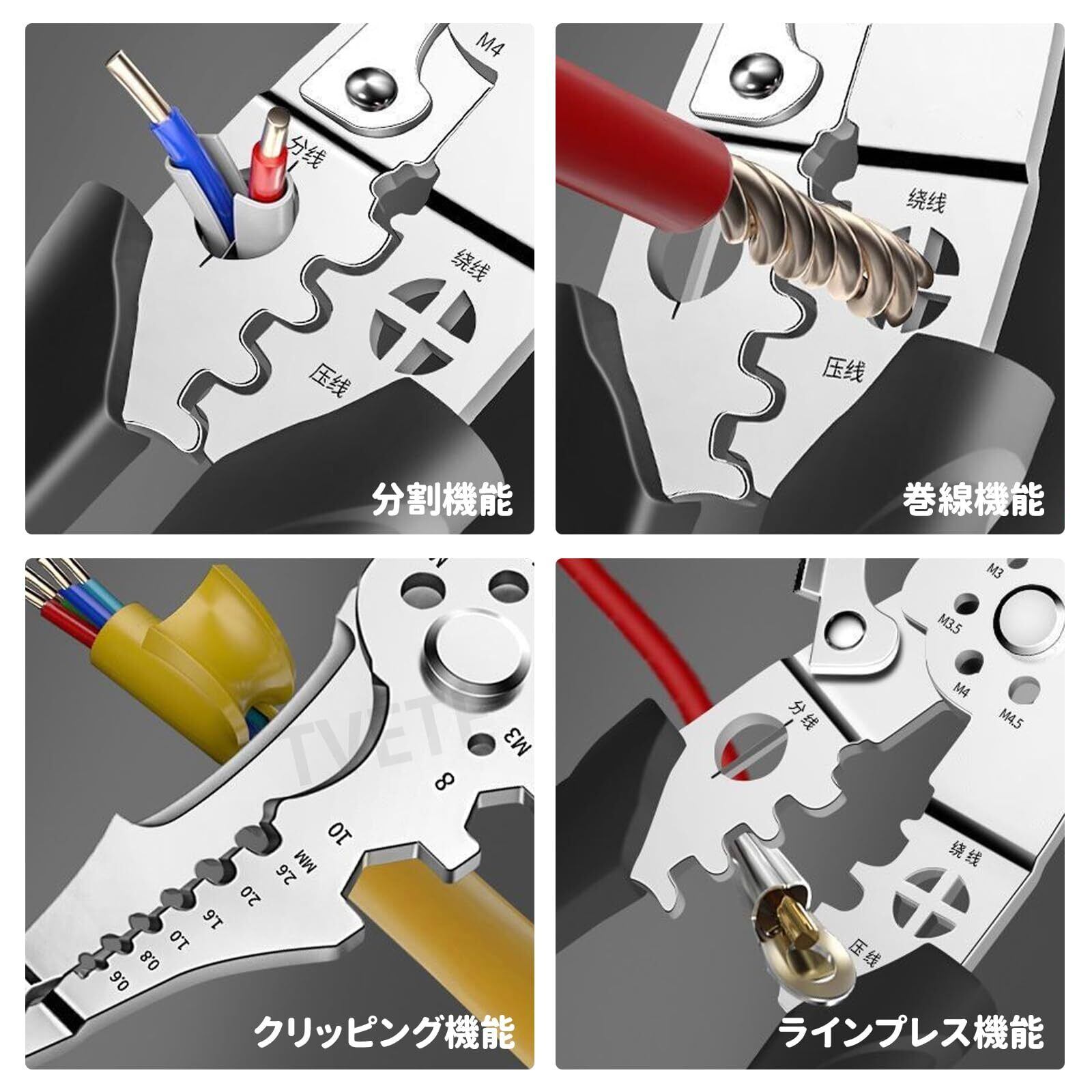 【新春セール】TVETE ワイヤーストリッパー 多機能 ケーブルストリッパー 圧着式ワイヤーストリッパー 使用範囲0.6mm-2.6mmロック付 ステンレス鋼 ハンドツール ケーブルカッタープライヤー ポータブル 電線皮む 損傷なし ネジ切る 剥離ケーブル 端子圧着ペンチ 工業用グレード 電線ストリッパー 家庭用 作業場機械修理用 | Cherry Blossoms
