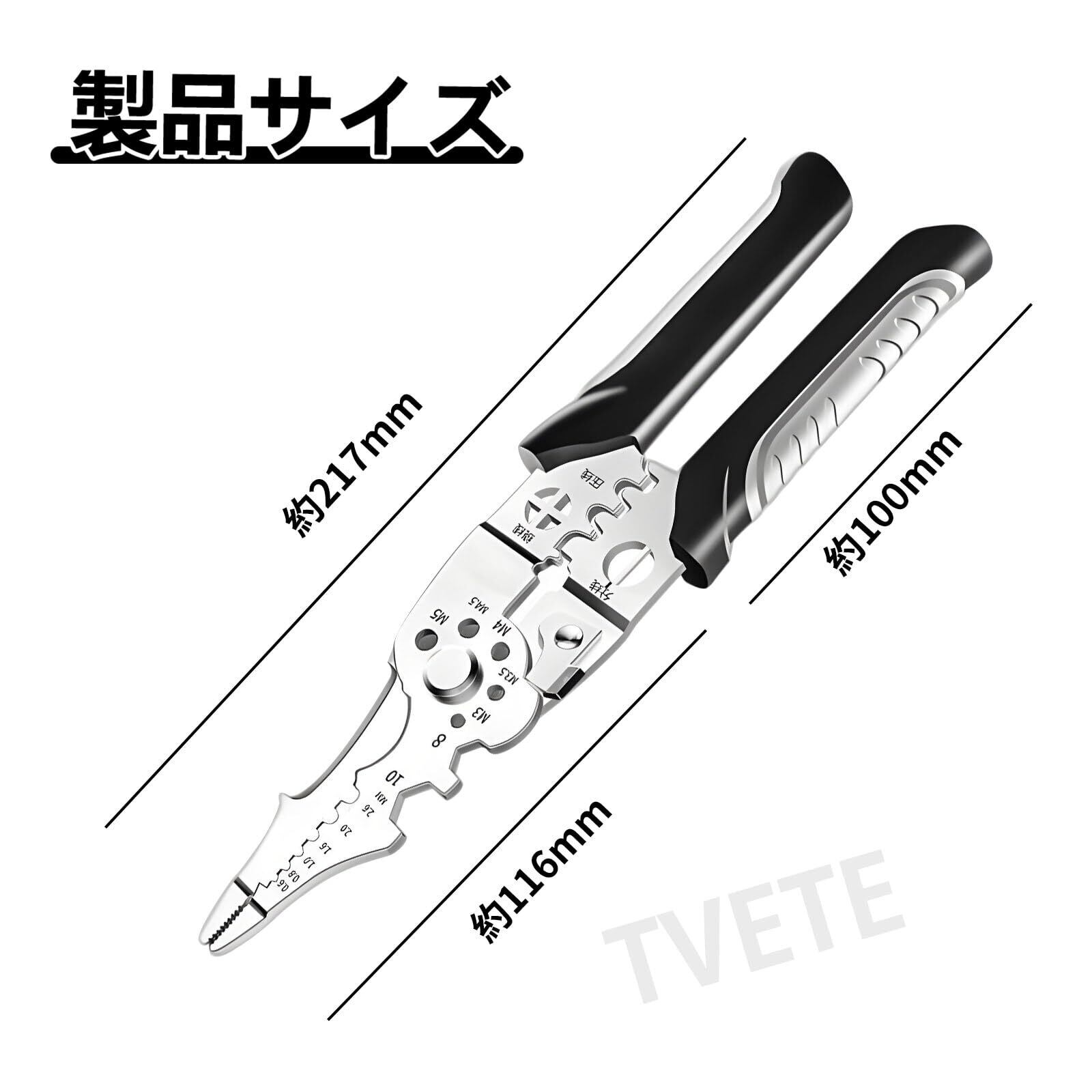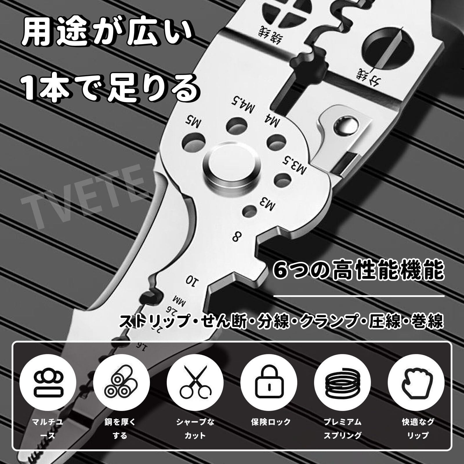 TVETE ワイヤーストリッパー 多機能 ケーブルストリッパー 圧着式ワイヤーストリッパー 使用範囲0.6mm-2.6mmロック付 ステンレス鋼 ハンドツール ケーブルカッタープライヤー ポータブル 電線皮む 損傷なし ネジ切る 剥離ケーブル 端子圧着ペンチ 工業用グレード 電線ストリッパー 家庭用 作業場機械修理用