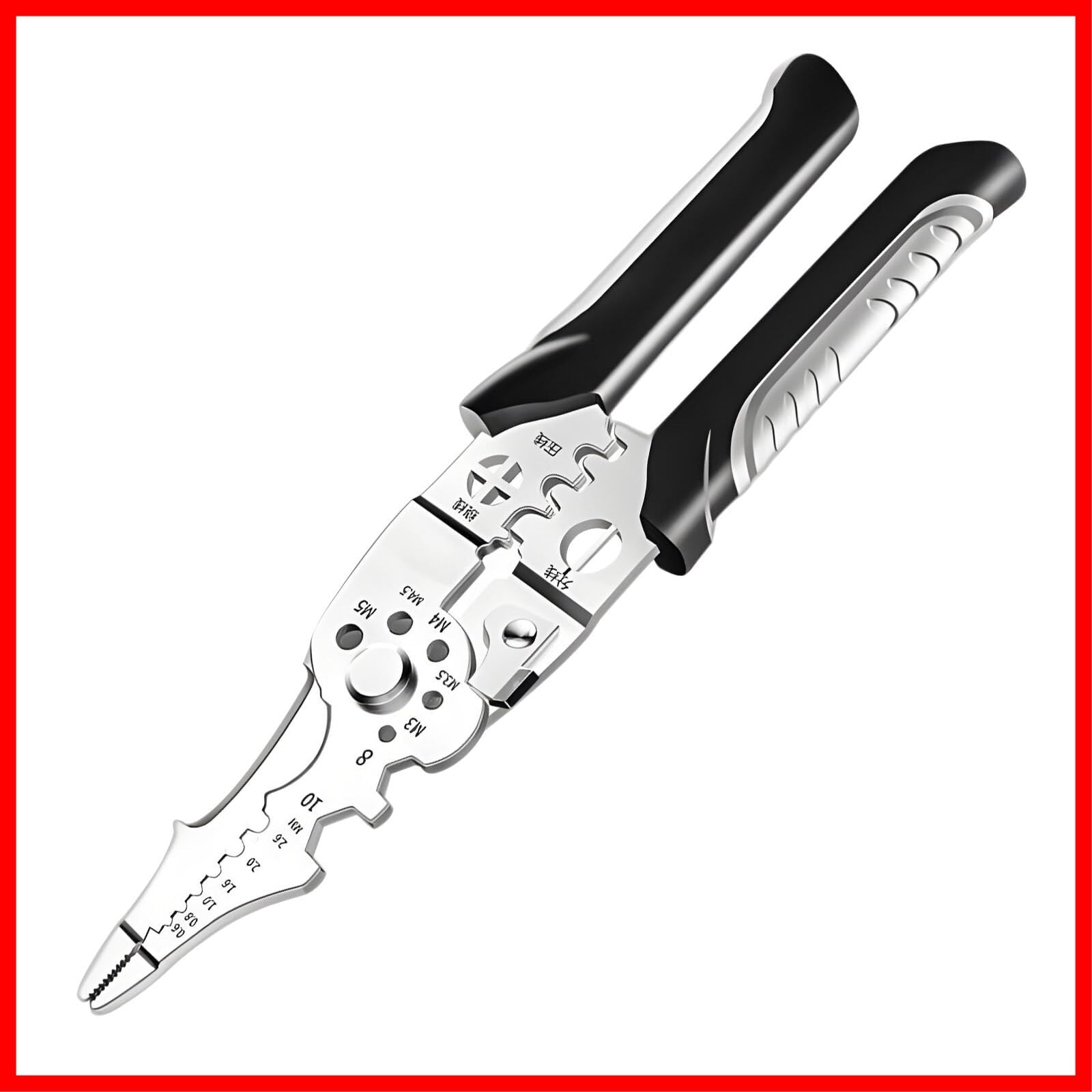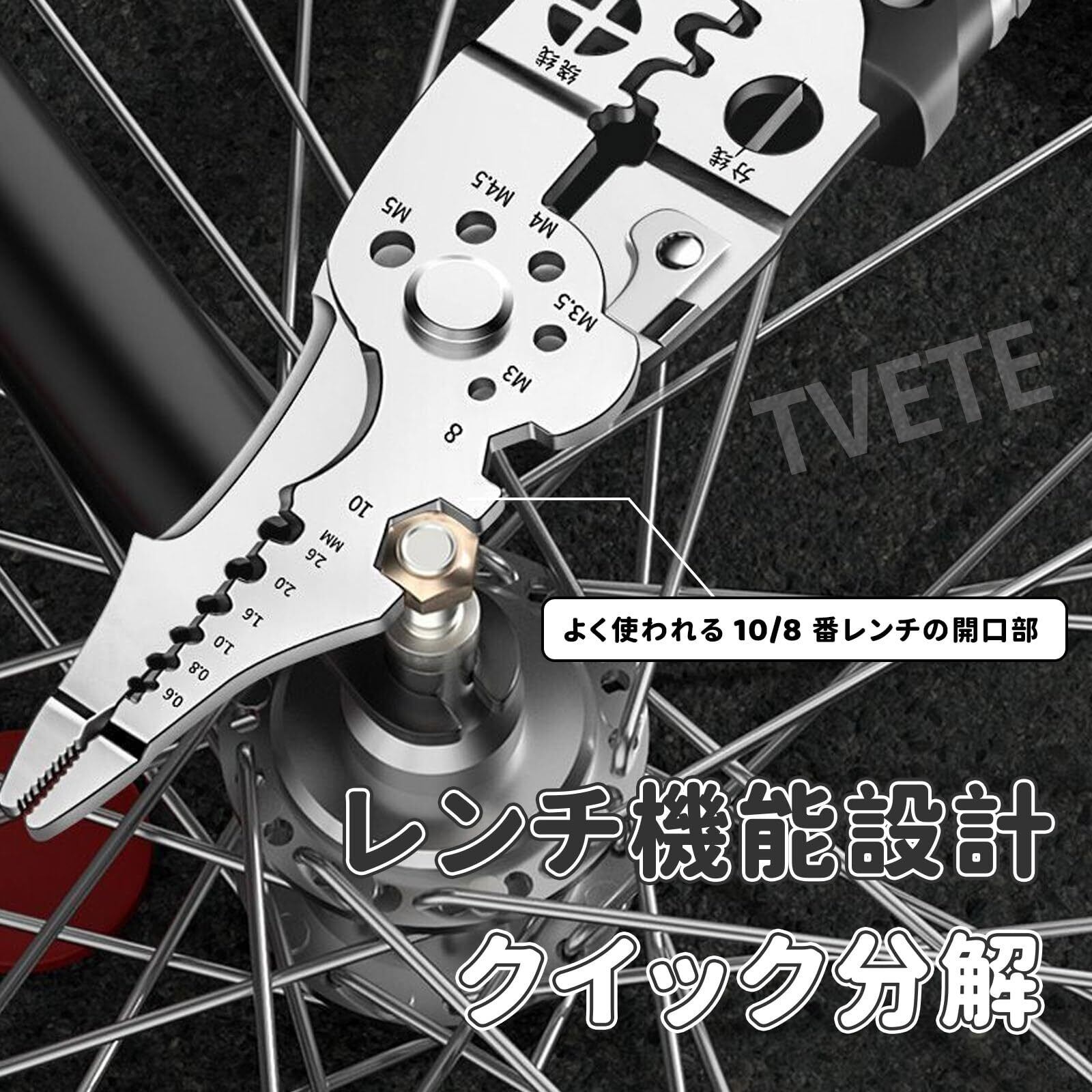 【多機能統合】切断、ストリップ、圧着、巻取り、分割、クランプ、レンチの7つの機能を1つに集め、微細な回路修理や複雑なライン敷設など、1本のプライヤーで全ての基本作業に対応でき、作業効率が大幅に向上します。また、多種サイズのネジ穴で、素早くネジを外すことができ、プライヤーの側面をスパナとして使用することで、8/10サイズのネジを外すことができます。