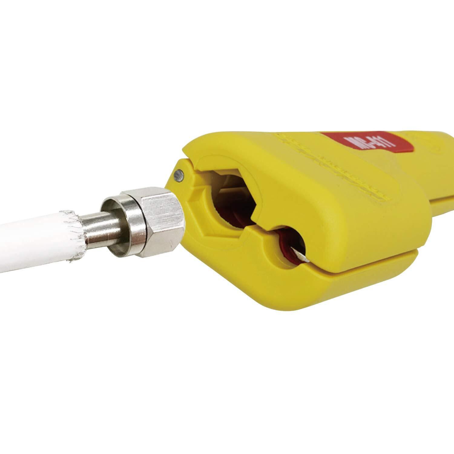 ●調整不要、2枚刃で一度に2層同時に皮むきが可能です。●コネクター(接栓)をケーブルに取り付ける加工が簡単に確実にできます。●六角レンチ(対辺11mm)で狭い場所でも取り付けることができ、取り外ししやすいです。●皮むきした外被が落ちません。●替刃の交換が簡単です。●TV受信用同軸ケーブル(地デジ4K、8K/BS/CS)の皮むき、加工、取付けに。
