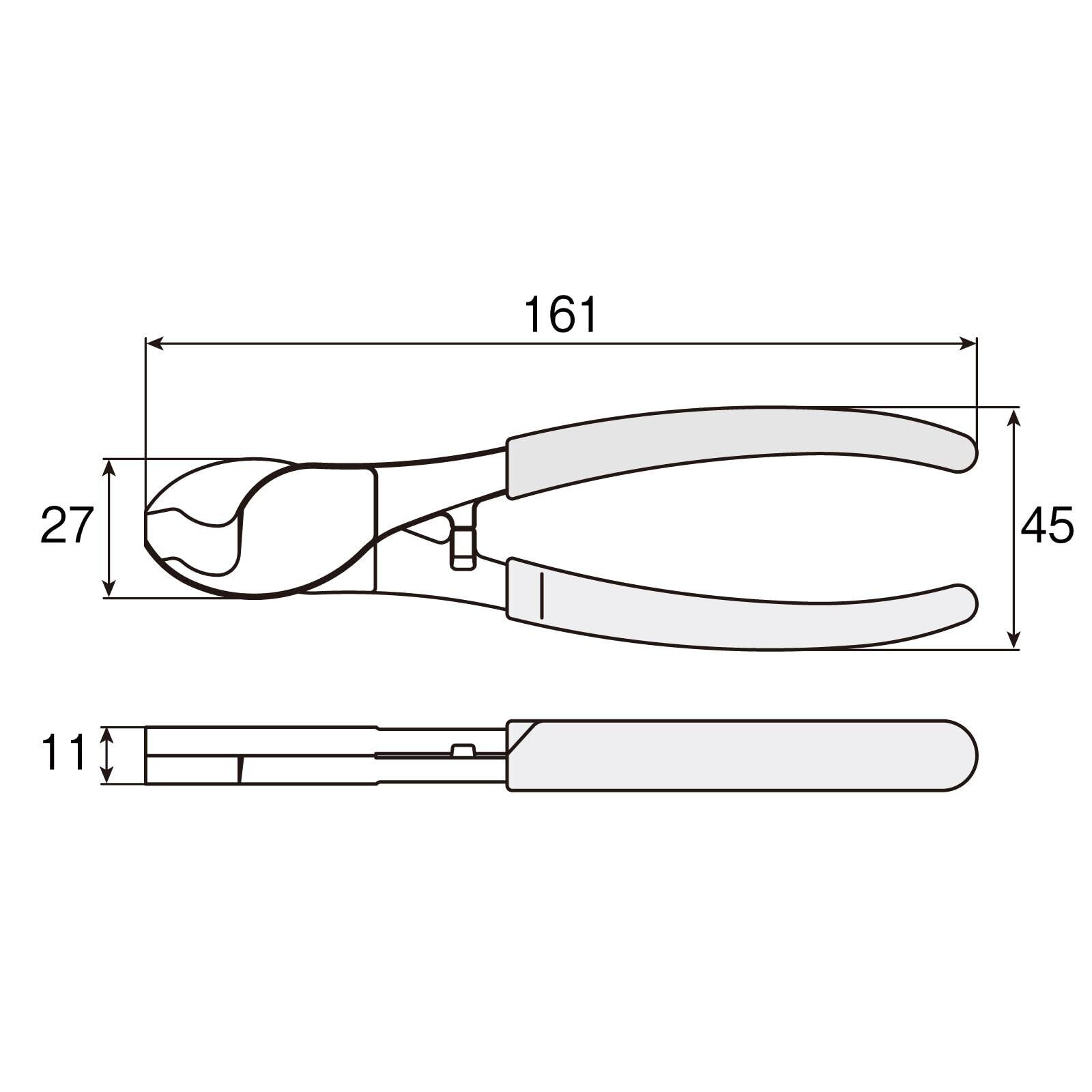 【切断能力】VVF線:2.0mmφ×2芯、IV線:22mm^2【硬度HRC】刃部:53【重量】167g【全長】161mm【用途】VVF線・IV線・KIP線・CVV線の切断、電線の切断や被覆剥離、電気工事、配線工事
