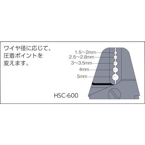 ●注意:アームスエージャーとアームオーバルスリーブは、必ずセットで使用してください。他社製圧着工具、またはスリーブは絶対使用しないでください。荷重に耐えられず事故の恐れがある。安全を確保するためにワイヤーロープは2本以上使用し、安全荷重を必ず守ってください。被覆ワイヤーは、被覆を取り去ってから圧着してください。被覆の上から圧着すると、荷重に耐えられず抜ける