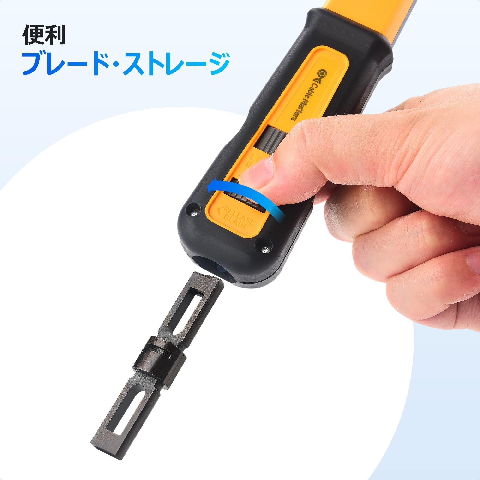【便利なブレード収納機能】ツイスト&ロック機構を備えた取り外し可能なブレードが特徴で、使わない時は本体に安全に収納でき、輸送時も安心です。これによりLAN パンチダウンツールツールの使いやすさと安全性が向上します。