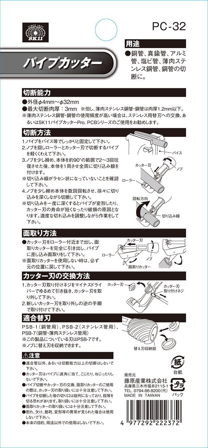 SK11(エスケー11) パイプカッター 切断能力 4~32mm PC-32