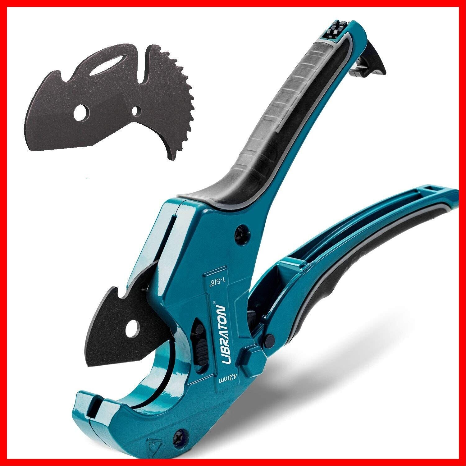 LIBRATON 塩ビカッター 重切削 エンビカッター ラチェット式 塩ビ管カッター PVCパイプカッター 切断能力 42 mm 替刃付き