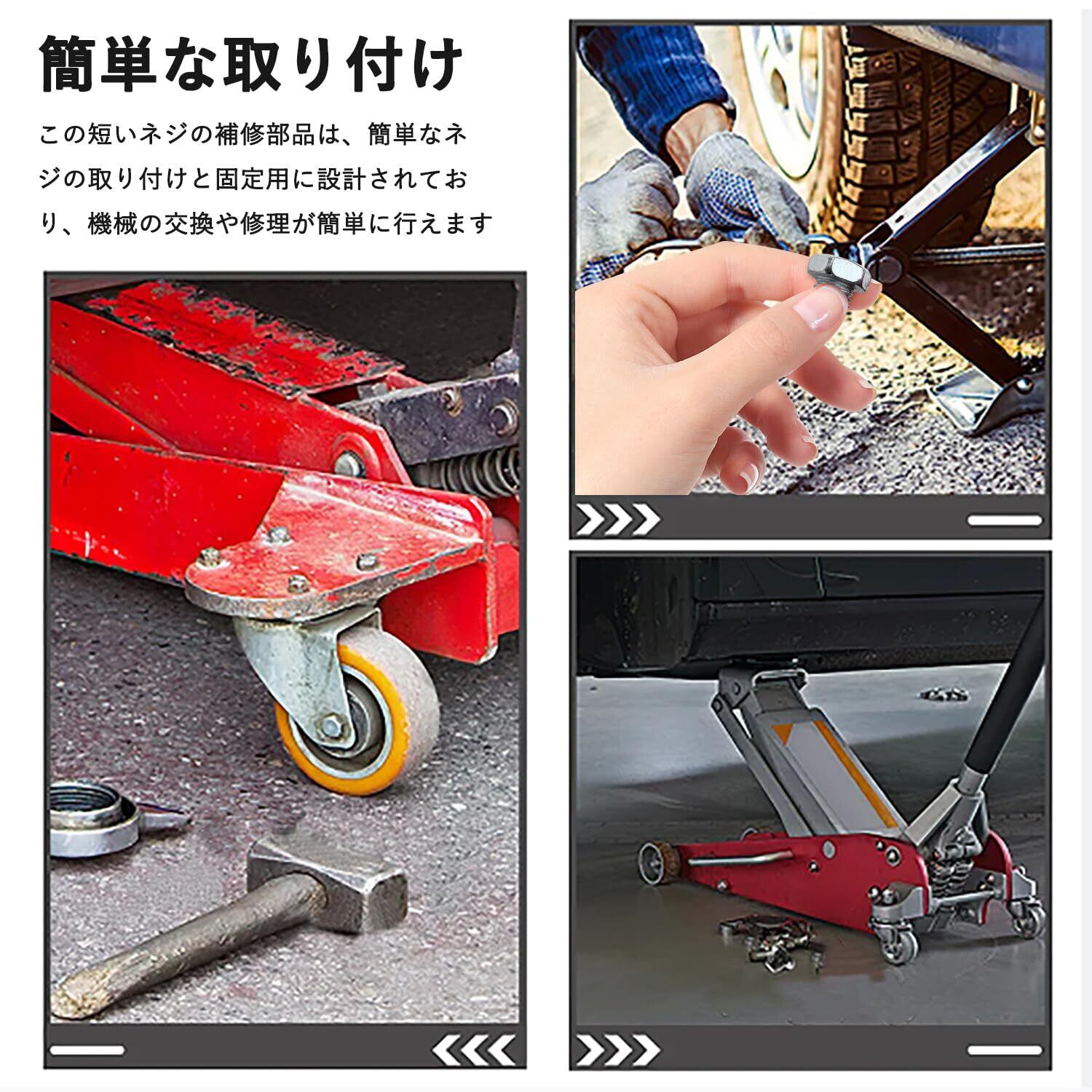 【パッケージ内容】各パッケージにはネジが2個含まれており、サイズは19ミリ、直径は7ミリから12ミリ。ほとんどのブランドの3トンまたは4トン油圧レベリングジャッキに適合し、取り付けも交換も簡単です。