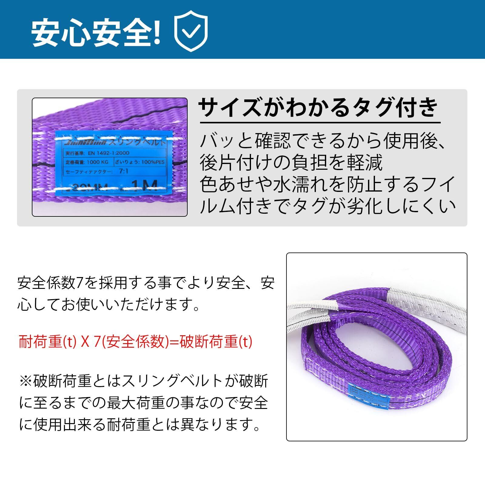 【商品仕様】■全長:1M ■ベルト幅:30mm ■紫 最大使用荷重:1000kg (ストレート吊の場合) ■安全係数:7