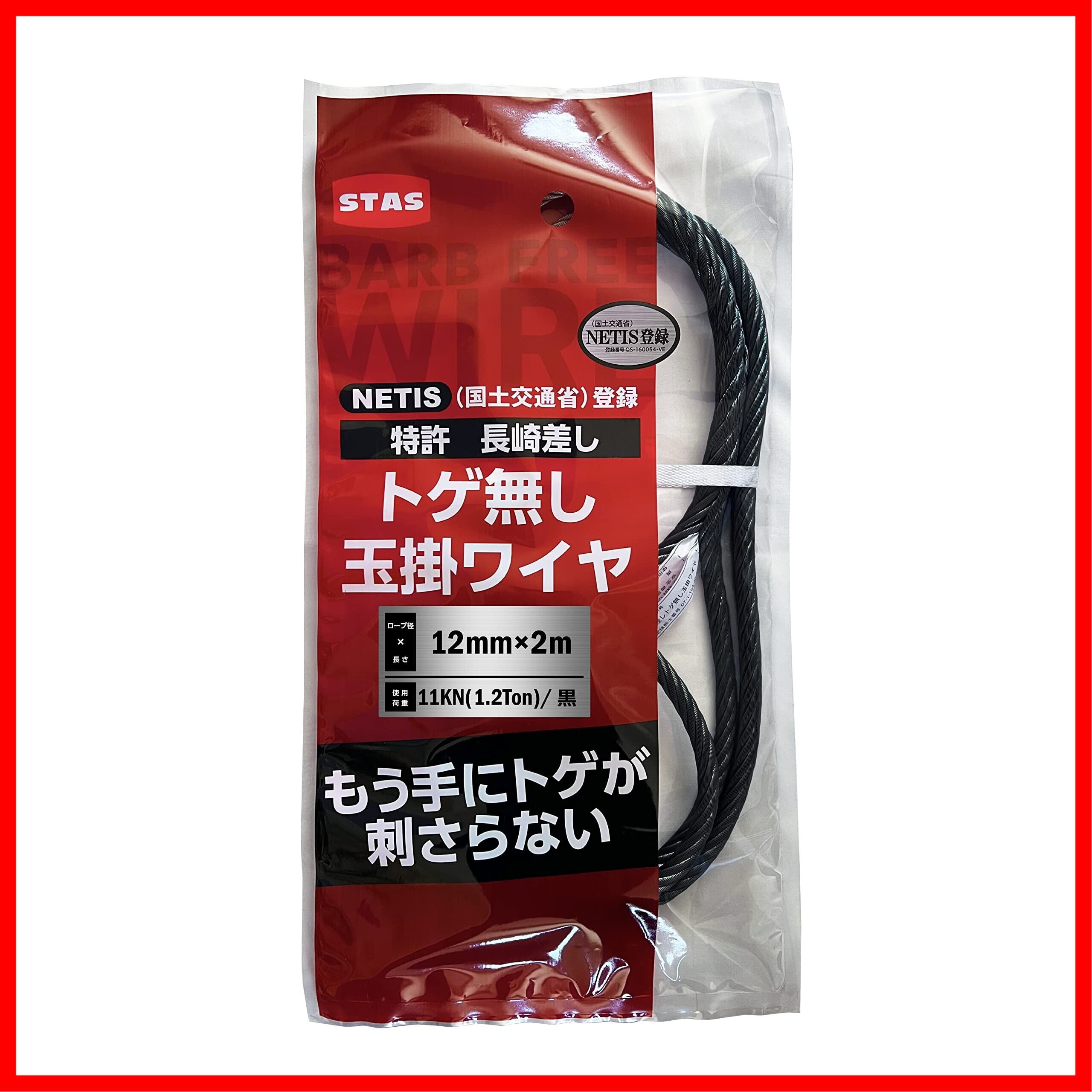 STAS(スタス) JIS長崎差しトゲ無し玉掛ワイヤ 黒 12mm×2M 安全使用荷重:1.2t