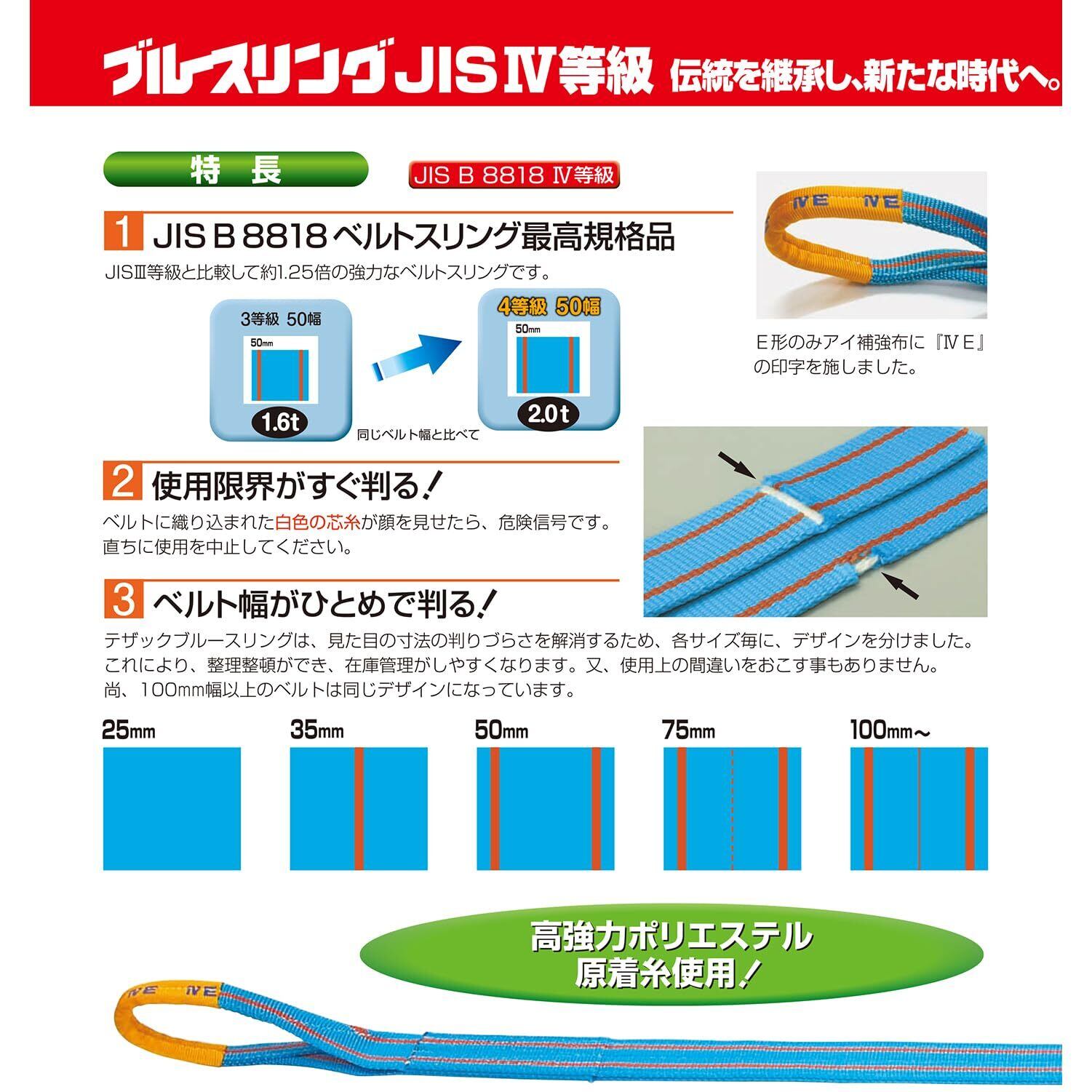 テザック(Tesac) ブルースリング JIS4等級・両端アイ形 幅35mm×長さ2.5m
