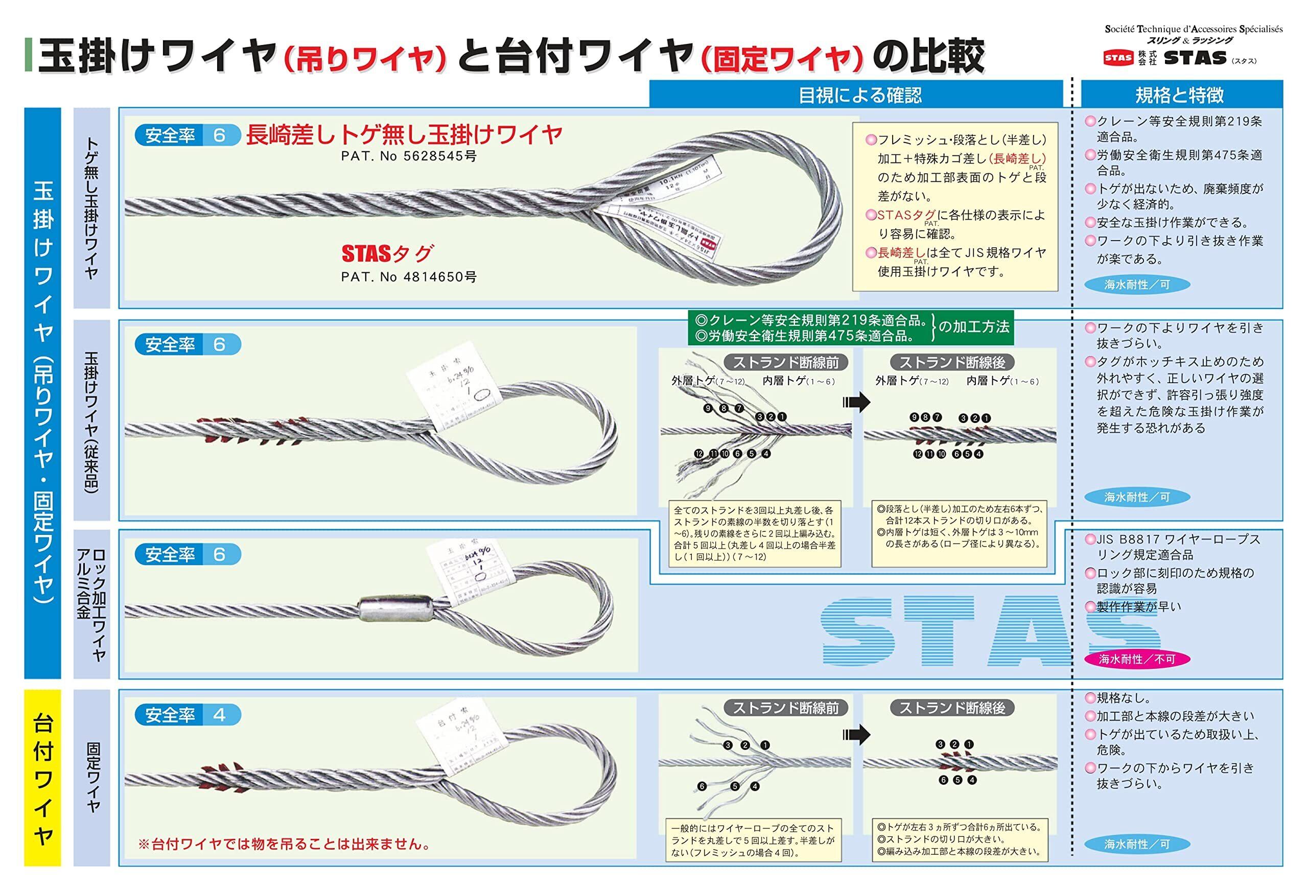 STAS(スタス) JIS長崎差しトゲ無し玉掛ワイヤ 黒 16mm×4M 安全使用荷重:2.13t