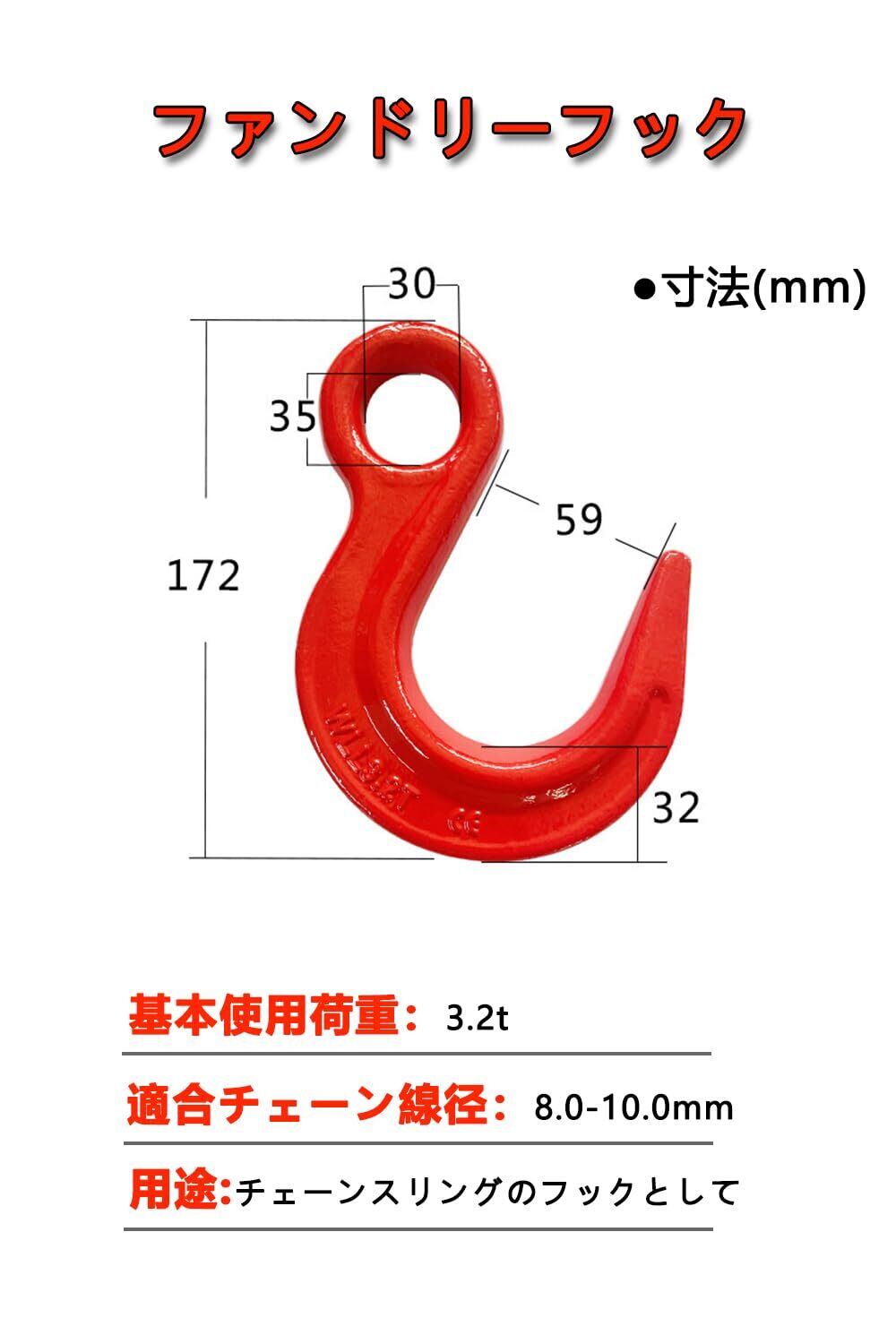 【ファンドリーフック】基本使用荷重(t):3.2t 、チェーン線径(mm):10.0 材質:G80合金鋼 質量:0.95KG
