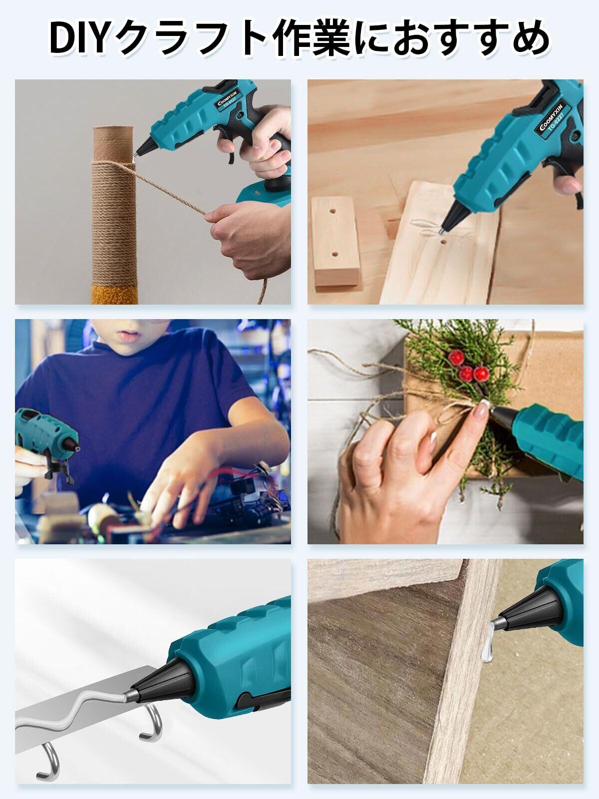 COOMYXIN グルーガン 90S急速加熱 コードレス 充電式 ホットメルト接着剤ガン 7mmスティック グルースティック30本付き DIY趣味、工芸品、木工、家庭用、工業用に適している
