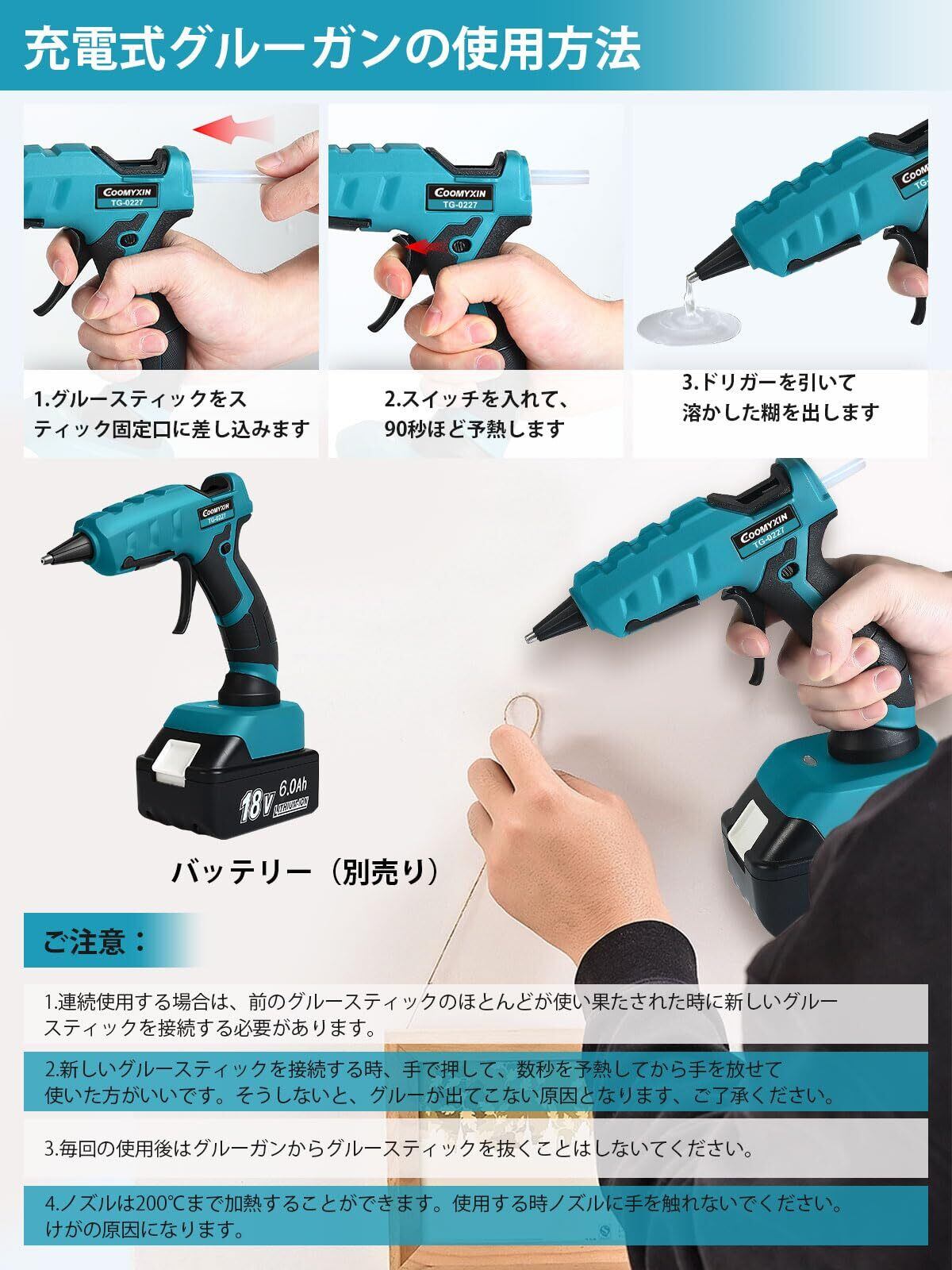 【2022最新】COOMYXIN グルーガン 90S急速加熱 コードレス 充電式 ホットメルト接着剤ガン 7mmスティック グルースティック30本付き DIY趣味、工芸品、木工、家庭用、工業用に適している | Cherry Blossoms