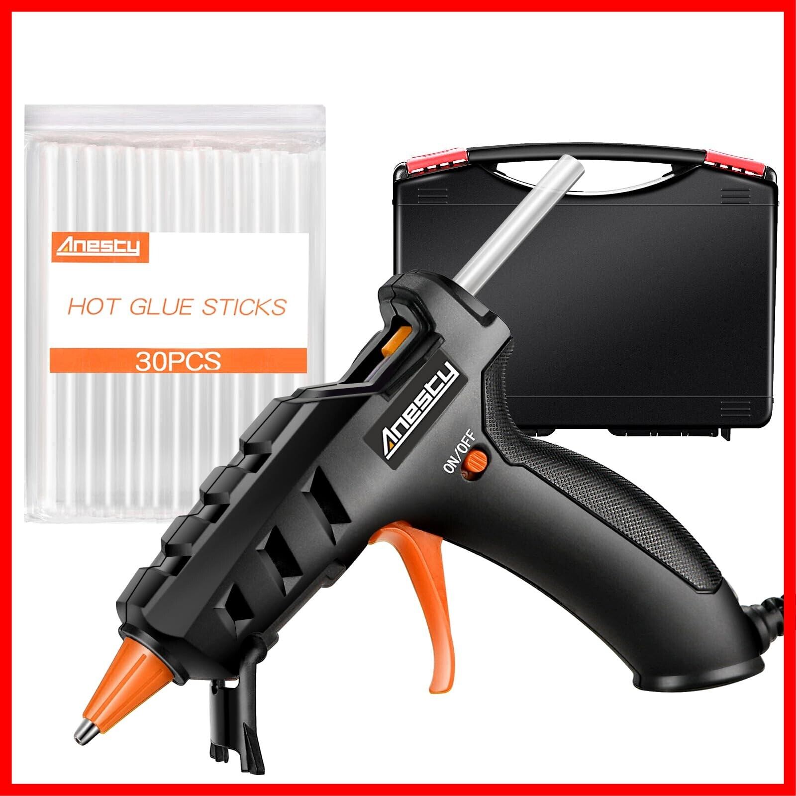Anesty GG-02 グルーガン 90秒 加熱早い 50W 高温カつ安定 垂れない 手元でON・OFF出来 ホビー用グルーガン 強力 小型 超軽量 手芸 造花の接着 DIY 修理 専用ケース スティック30本付