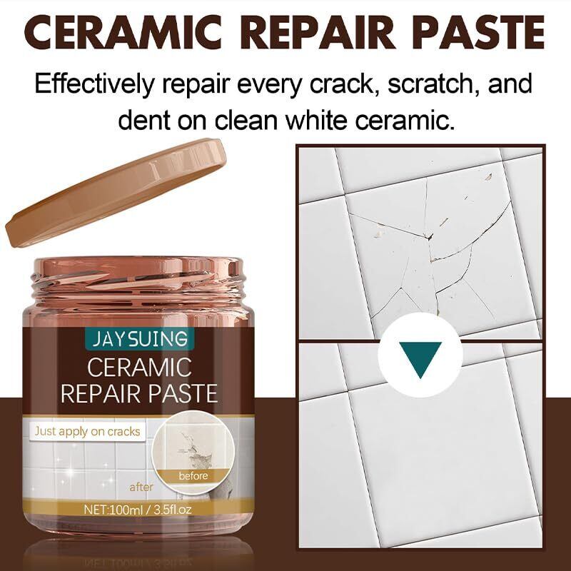 【高光沢エポキシ樹脂補修剤】耐水性・耐久性に優れた樹脂製で、修復後に高光沢仕上げを実現。陶材・タイル・石材の傷・穴・ひび割れを目立たなく補修。