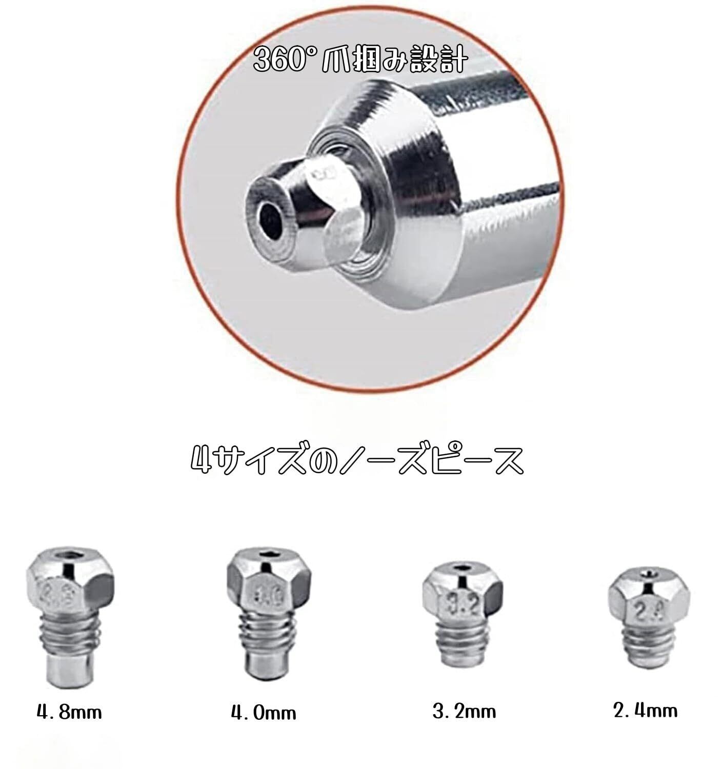【ノーズピース】ノーズピース:2.4、3.2、4.0、4.8(φmm) 必読:使用するリベットに適合したノーズピースを必ずご使用下さい。サイズを誤って使用すると、リベット切断後、シャフトが排出されないで内部に詰まってしまう場合があります。