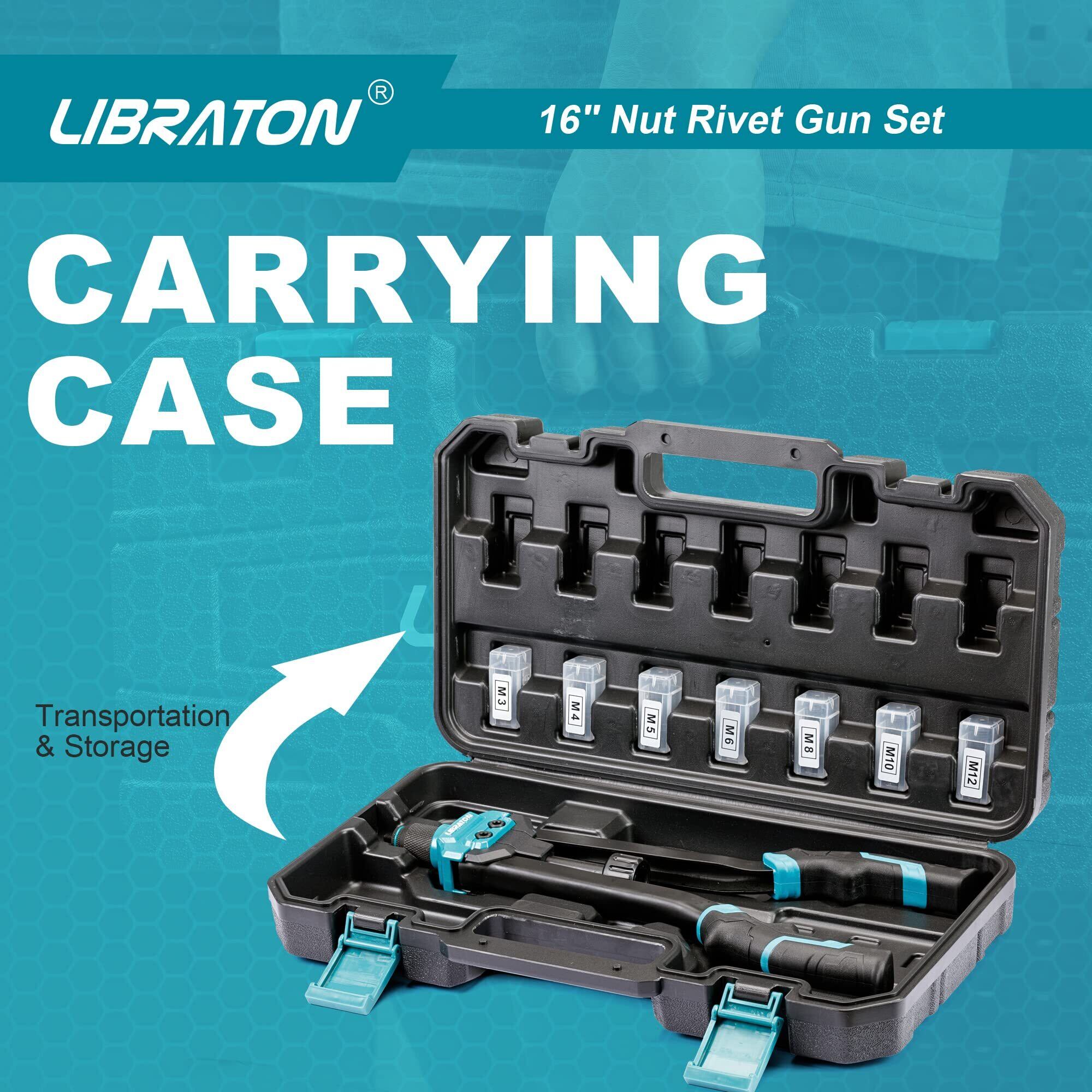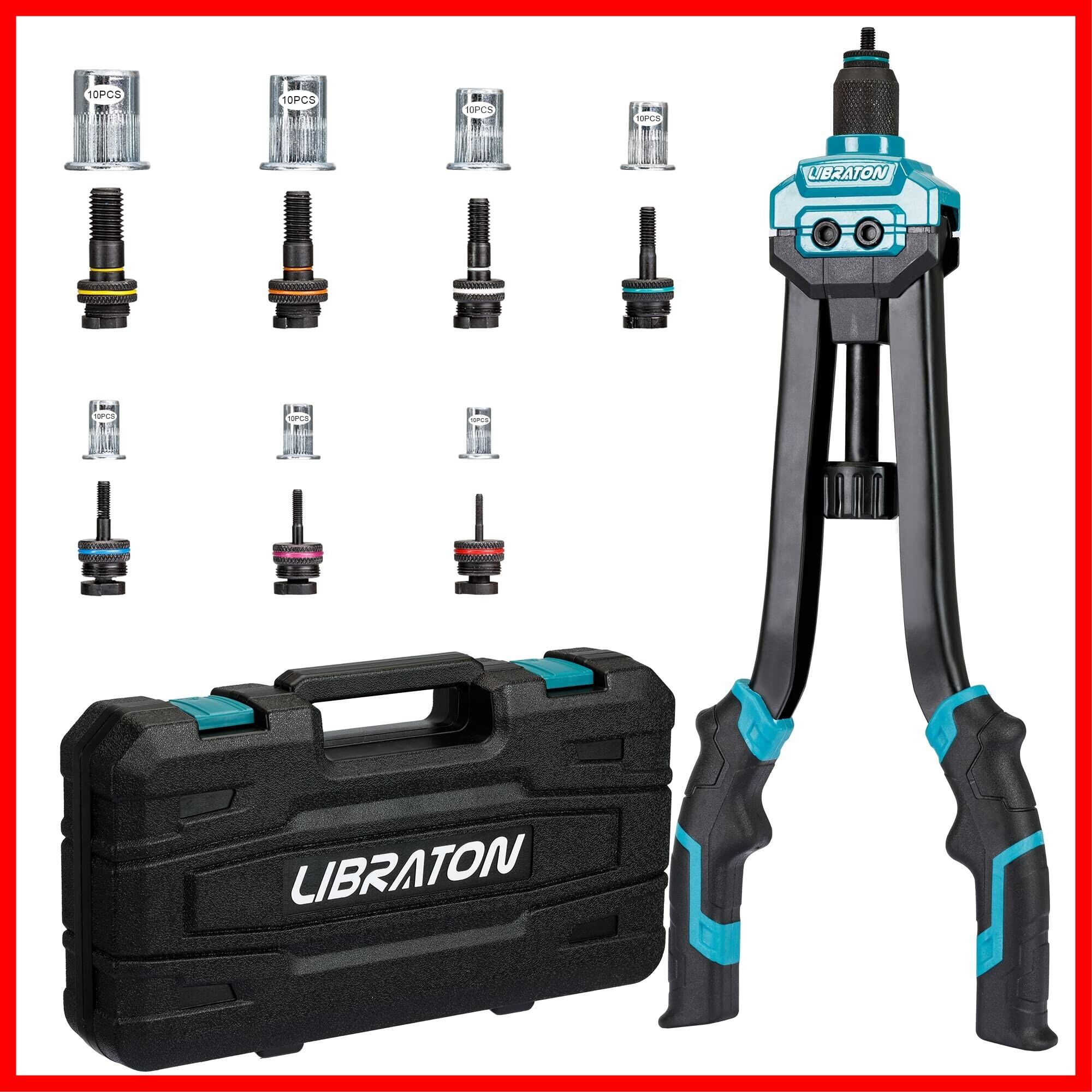 LIBRATON ハンドナッターセット 両手式 M3/M4/M5/M6/M8/M10/M12 ブラインドナット70個入れ ハンドリベットナットツール
