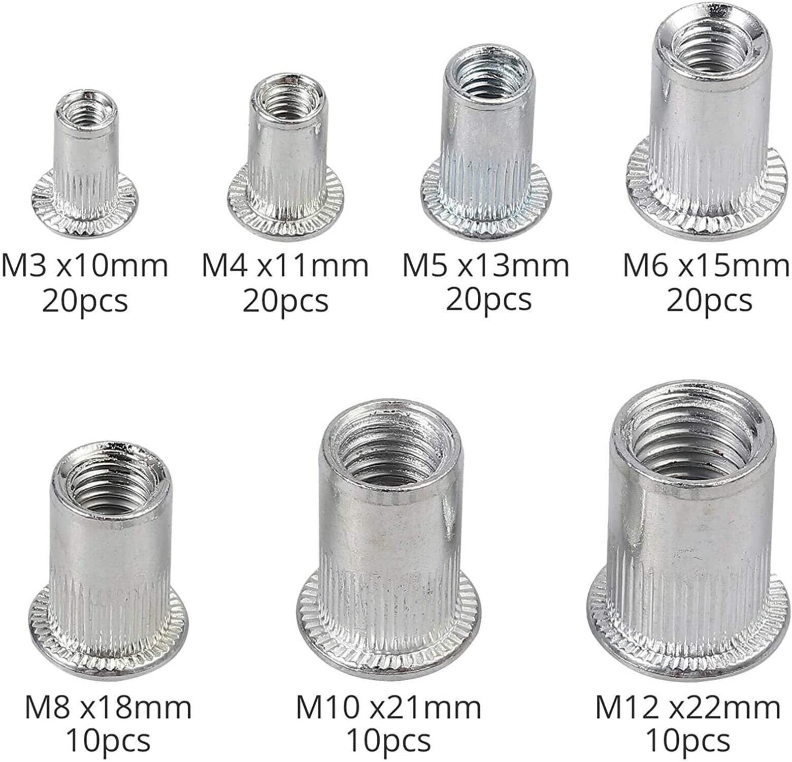 【パッケージ内容】13インチの頑丈なハンドナットリベッターキット - リベットナット110個、さまざまなサイズの交換可能なマンドレル7個(METRIC M3 M4 M5 M6 M8 M10 M12)、および頑丈なポータブル収納ケース1個が装備されています。