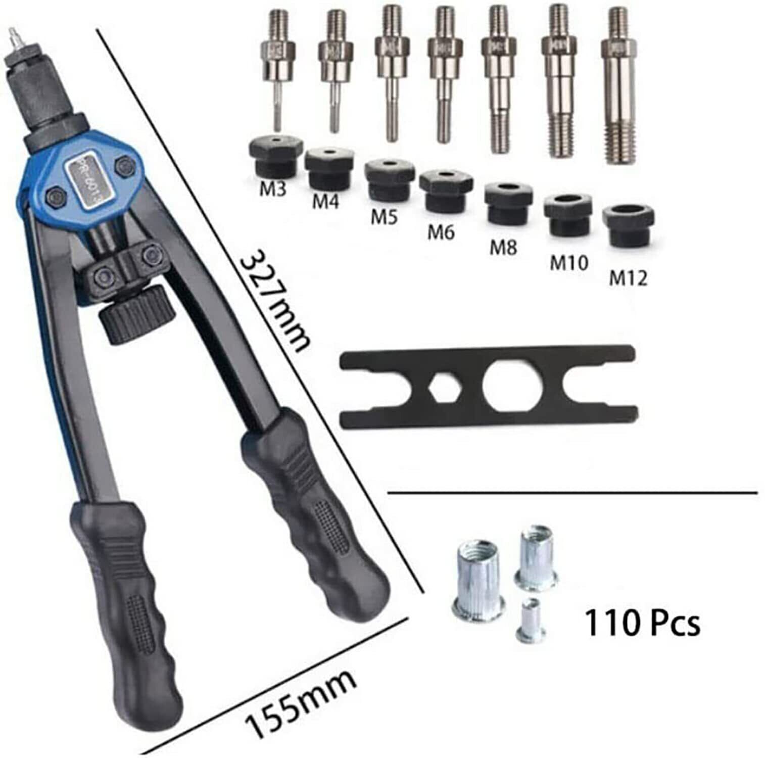 YWHWXB リベットナット 両手式ナッターセット ハンドリベッターセット ハンドナッター リベットツール リベット用工具 DIY リベットナッター ナットリベッター 接着 結合 穴あけ 加工 リベットナッターセット-110個 リベットナット M3/M4/M5/M6/M8/M10/M12などに対応
