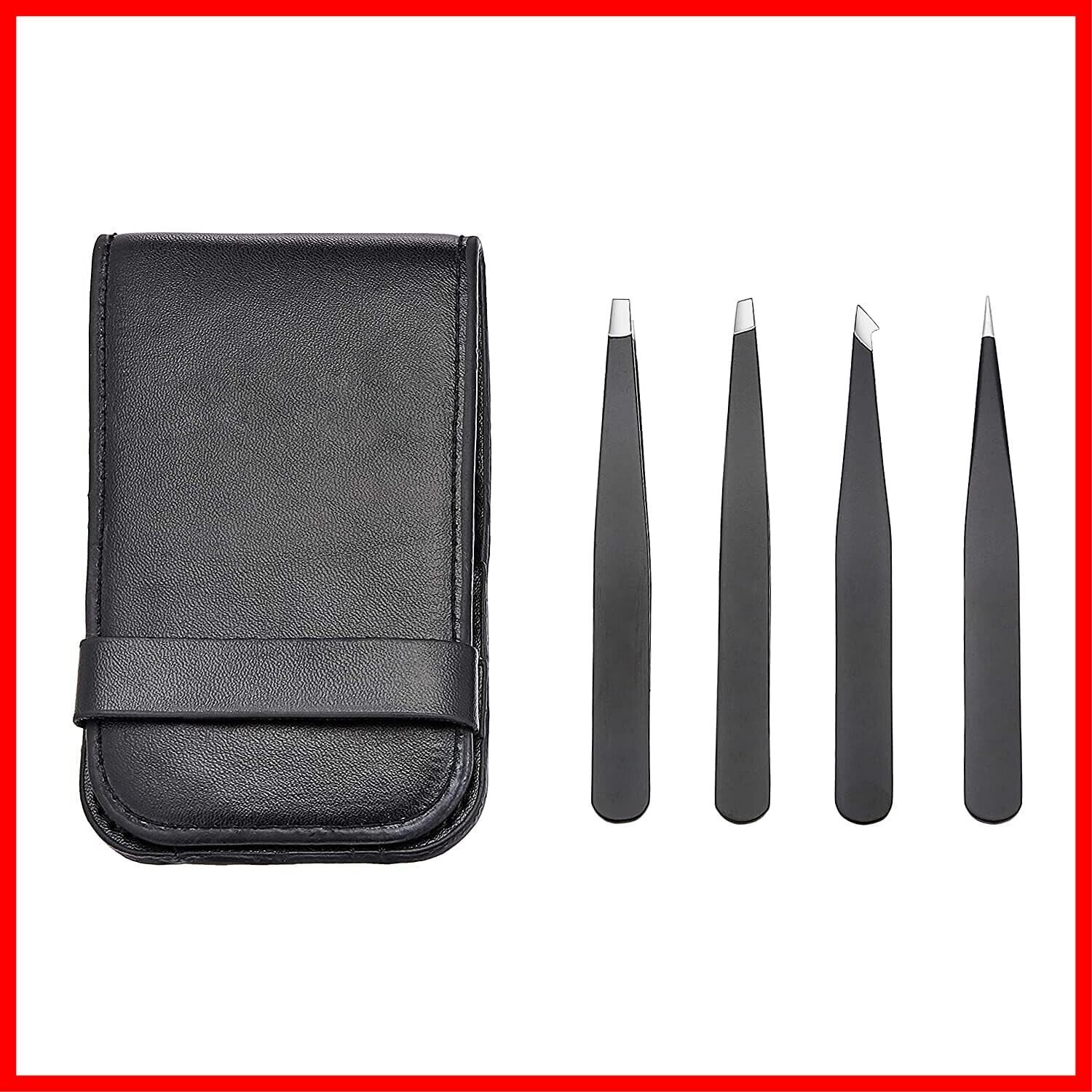 ベーシック ピンセット プロ仕様 ステンレススチール 顔の毛/まつげ/眉毛/埋没毛用 トラベルケース付き ブラック 4本セット (旧ブランド名:コマーシャル)