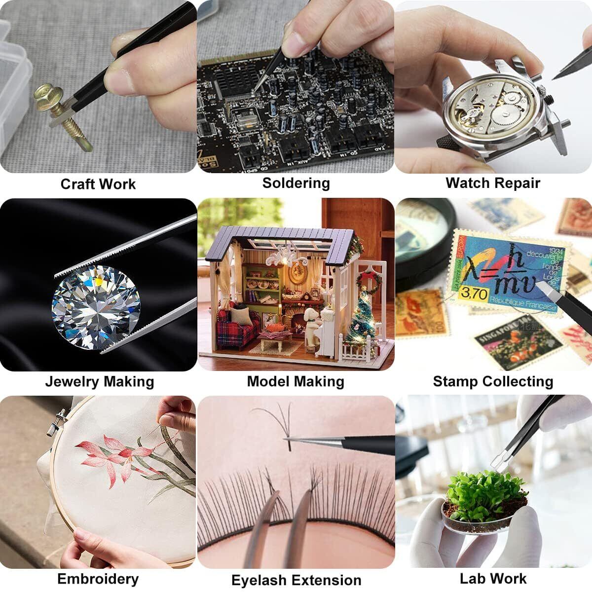 多様な用途ピンセット:私たちの高品質のピンセットは、その完璧なテンションとアライメントにより、脱毛、まつ毛エクステ、電子部品の組み立て、宝石の装飾、実験室実験など、さまざまな用途に使用できます。
