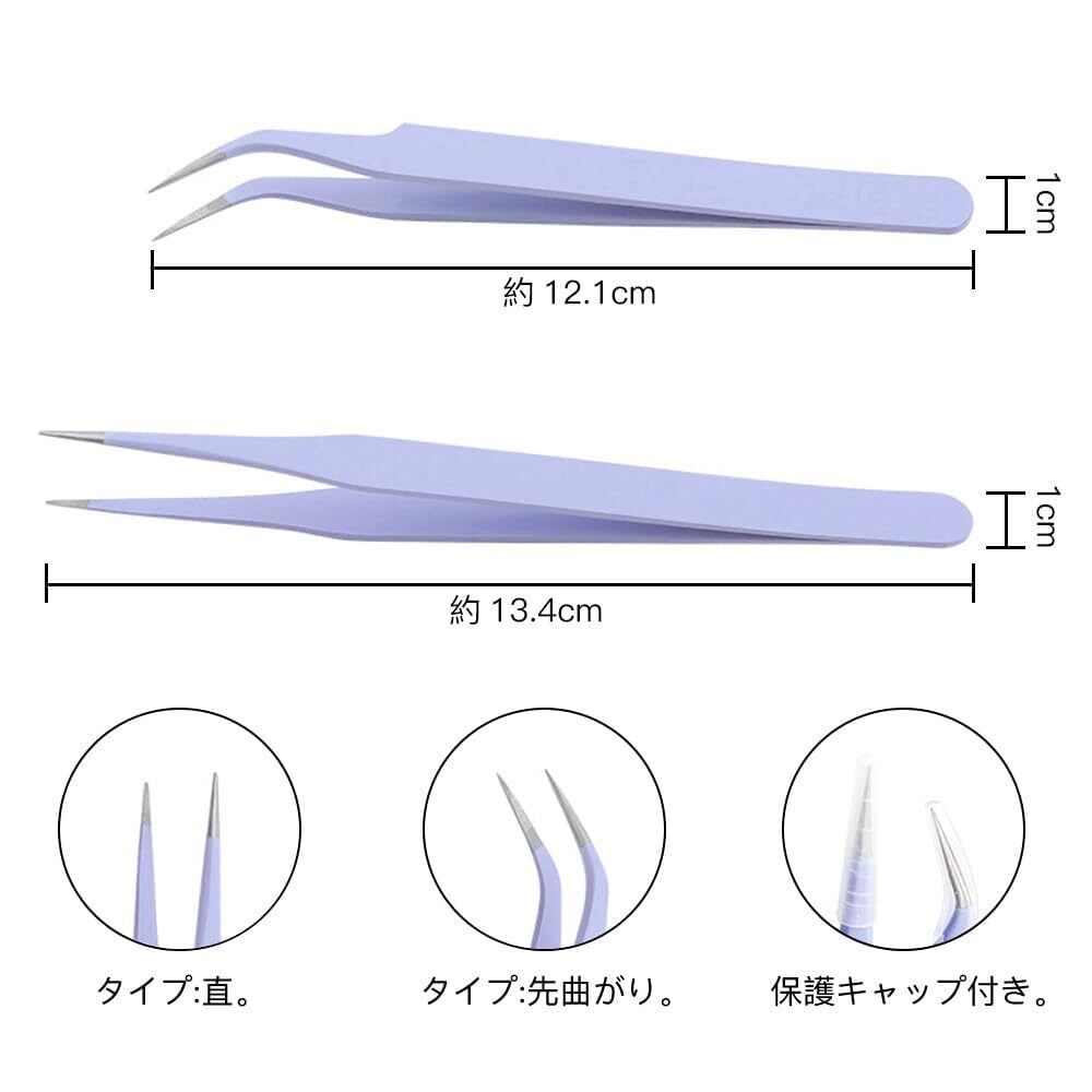 2種類セット:先曲がり、直。※ロットによりピンセットの先端があまり尖っていない場合がありますが、ご使用には影響ありません。予めご了承くださいませ。