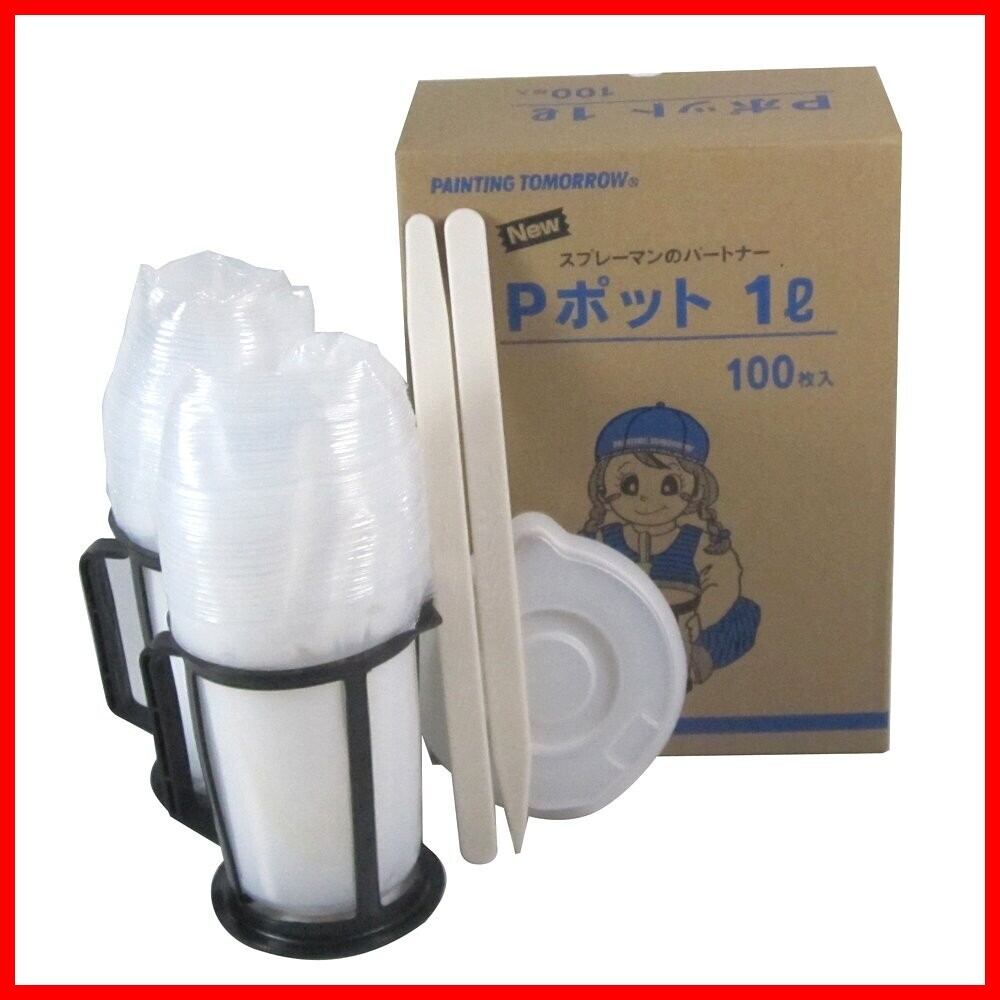 【商品名】 大塚刷毛 Pポット 1Lセット 内容器100枚入 【商品説明】 塗料の小分け等に便利な耐溶剤性の調色セットです。 容器・蓋・スタンド・撹拌棒のセットです