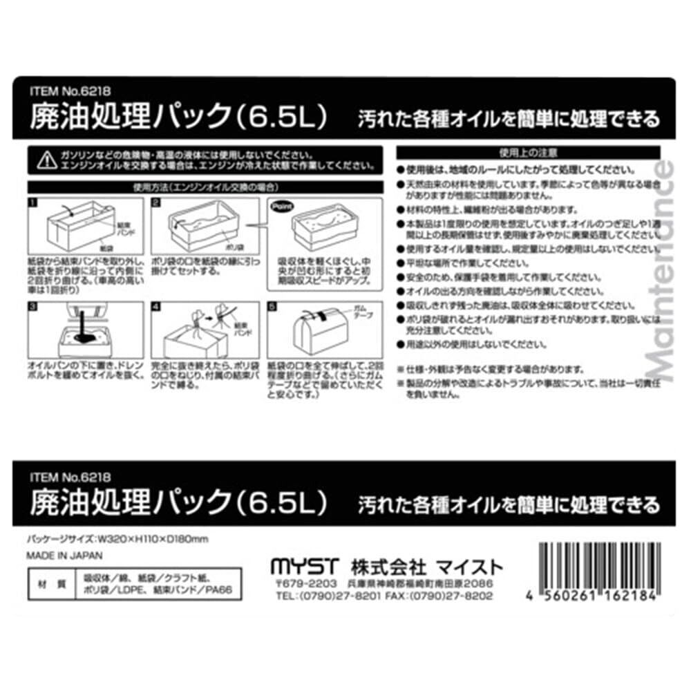 マイスト(MYST) 廃油処理パック 6.5L 汚れた各種オイルを簡単に処理 段ボール不使用で分別不要 No.6218