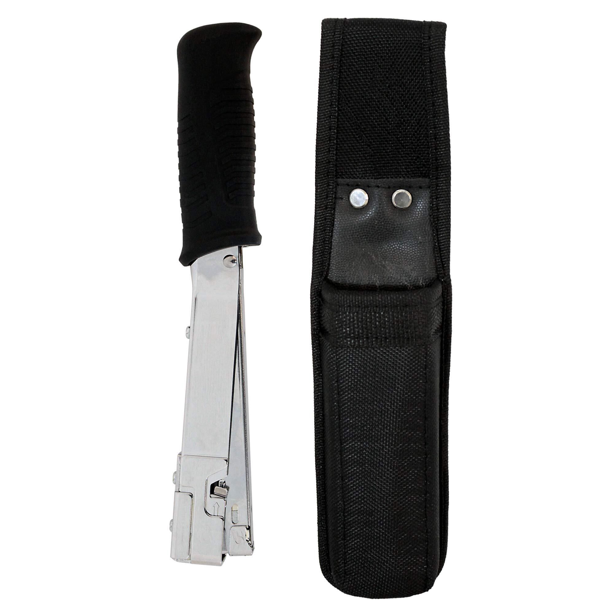 [特徴] ●普及率の高い肩幅12mmのステープルを採用しました。 ●専用サック付です。腰袋が干渉するような壁間の狭い現場での防水シート貼りなどで手返し良く作業出来ます。保管時の製品保護にも便利です。 [用途] ●薄物材料の木材への固定作業全般 ●作業例:外壁防水シート、屋根ルーフィング、断熱材、ラス網等の取付けに。 [適応ステープル] ●幅12mm×高さ6~10mm、充填本数144本 [仕様] ●サイズ:長さ275×幅34×高さ43mm、本体重量:約420g ●材質/本体:スチール、グリップ:TPR、サック:ナイロン
