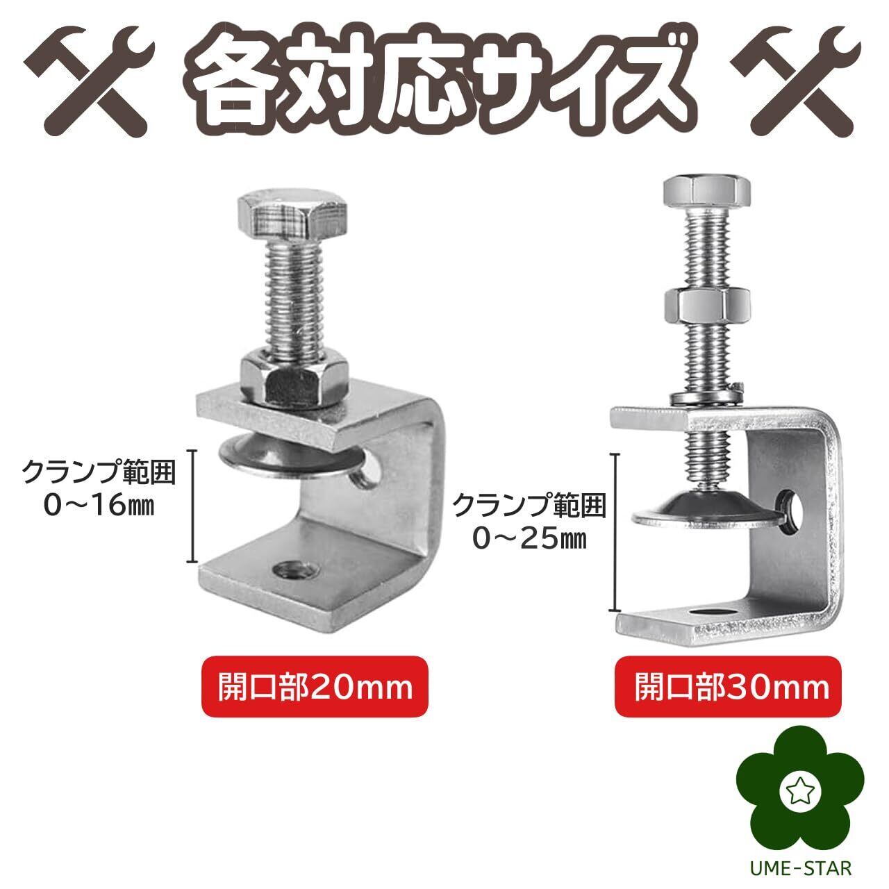 UME-STAR クランプ 工具 c型クランプ ミニクランプ cクランプ 小型 ステンレス ステンレス鋼cクランプ 金具 DIY (開口部 30mm 4個)
