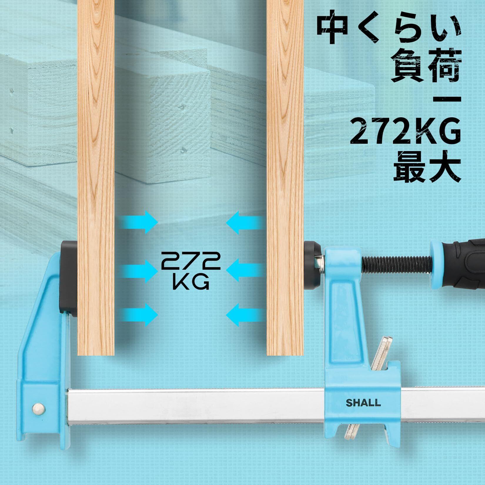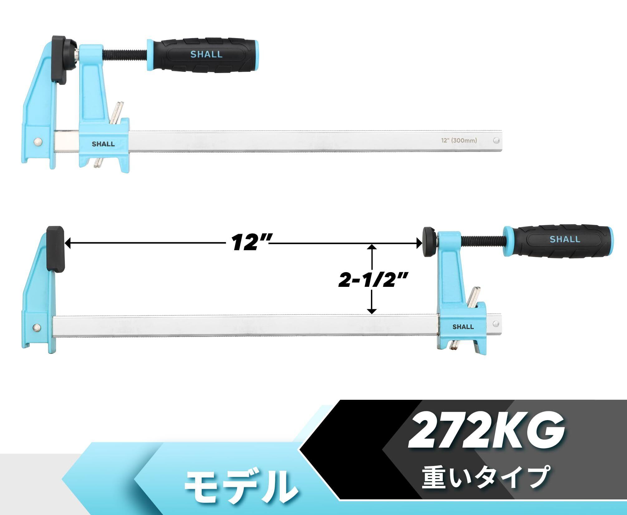 SHALL Fクランプ クランプ 最大締付力272kg 口開き300mm 接着 強力 固定 溶接 作業 切削 締付 F型 4個セットパック、木工、金属加工、DIY、工芸用