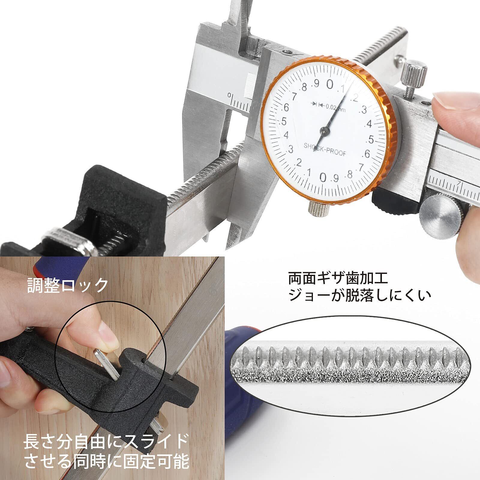 【調整可能】グリップは滑りにくい素材で握りやすく手になじむ形状になり、強度も耐久性も優れています。ハンドルがついている部分がスライドで調整可能なので、幅や厚みが違う材料等もすぐに締め付けられます。両面ギザ歯加工され、ジョーが脱落しにくいです。