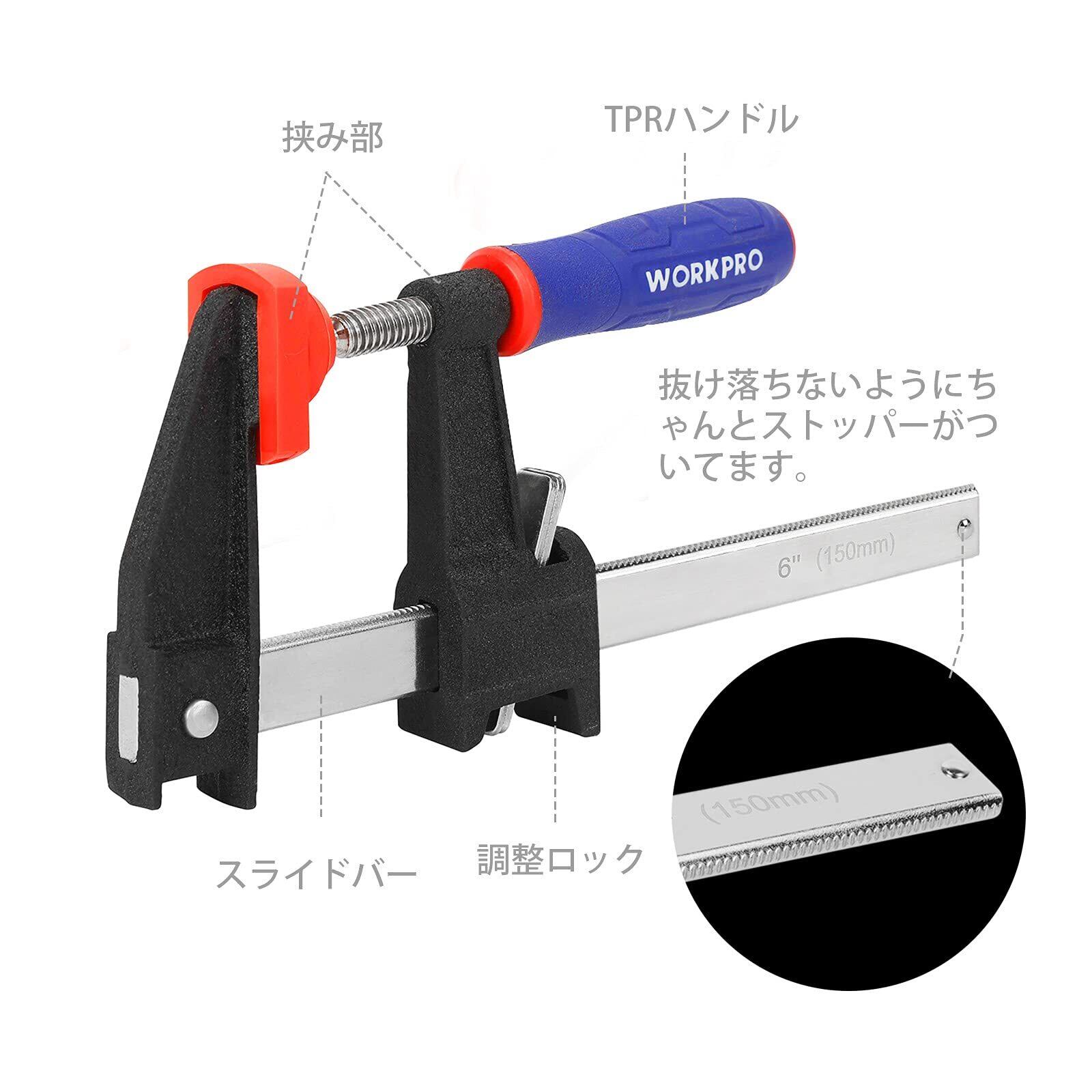WORKPRO クランプ Fクランプ 最大締付力272kg 口開き150mm DIY工具 木工 接着 強力 固定 溶接 作業 切削 締付 F型 2個セット