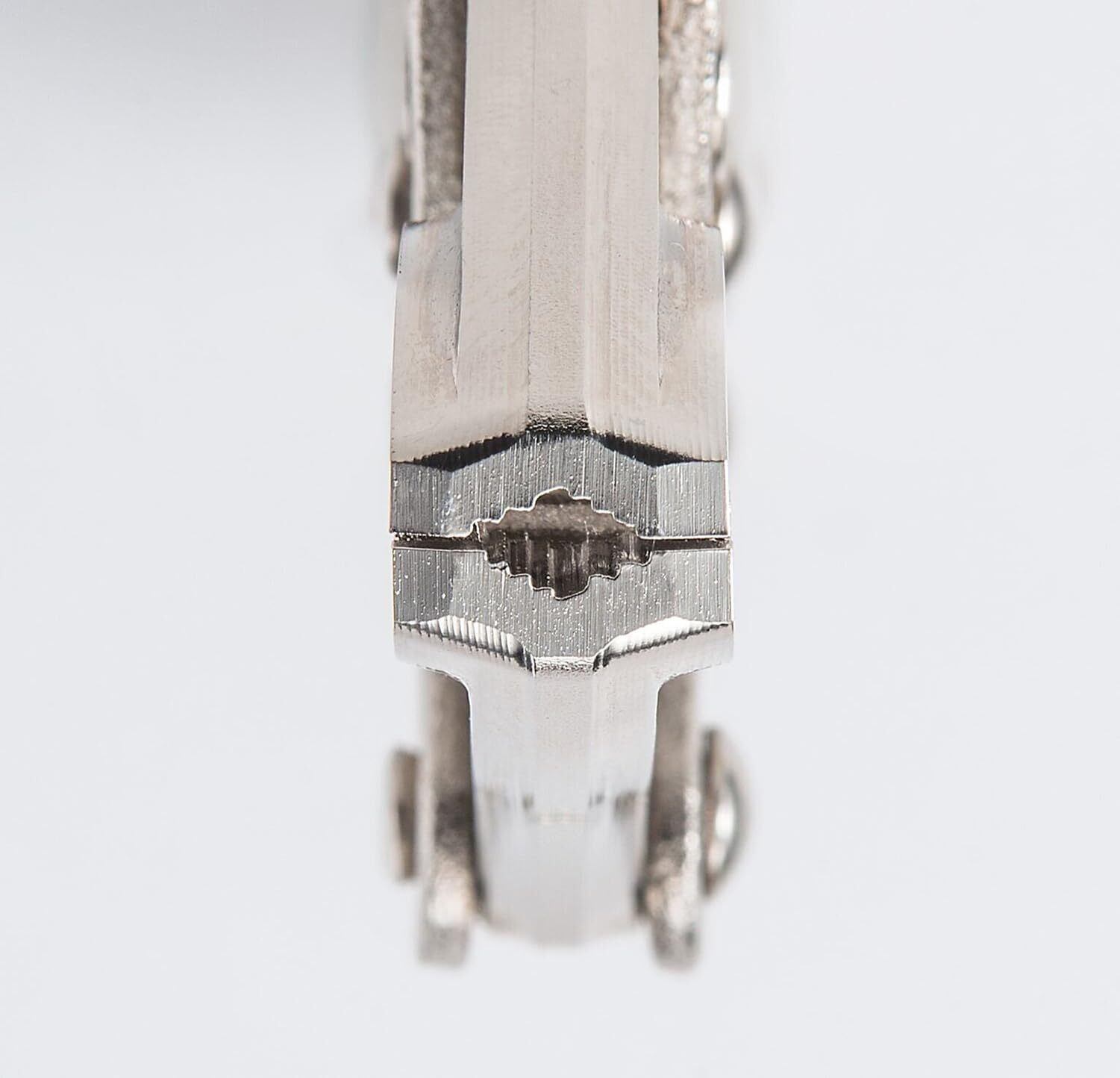 ・くわえ部はすべて独自設計のダイヤ型とし、計3カ所のくわえ部で、3点支持で確実につかむ