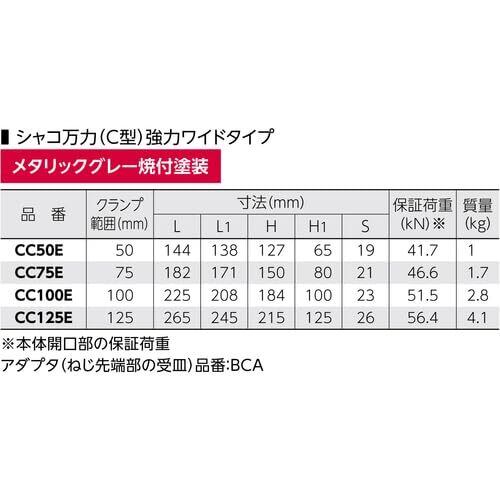 スーパー シャコ万力(C型)強力ワイドタイプ 75mm メタリックグレー焼付塗装