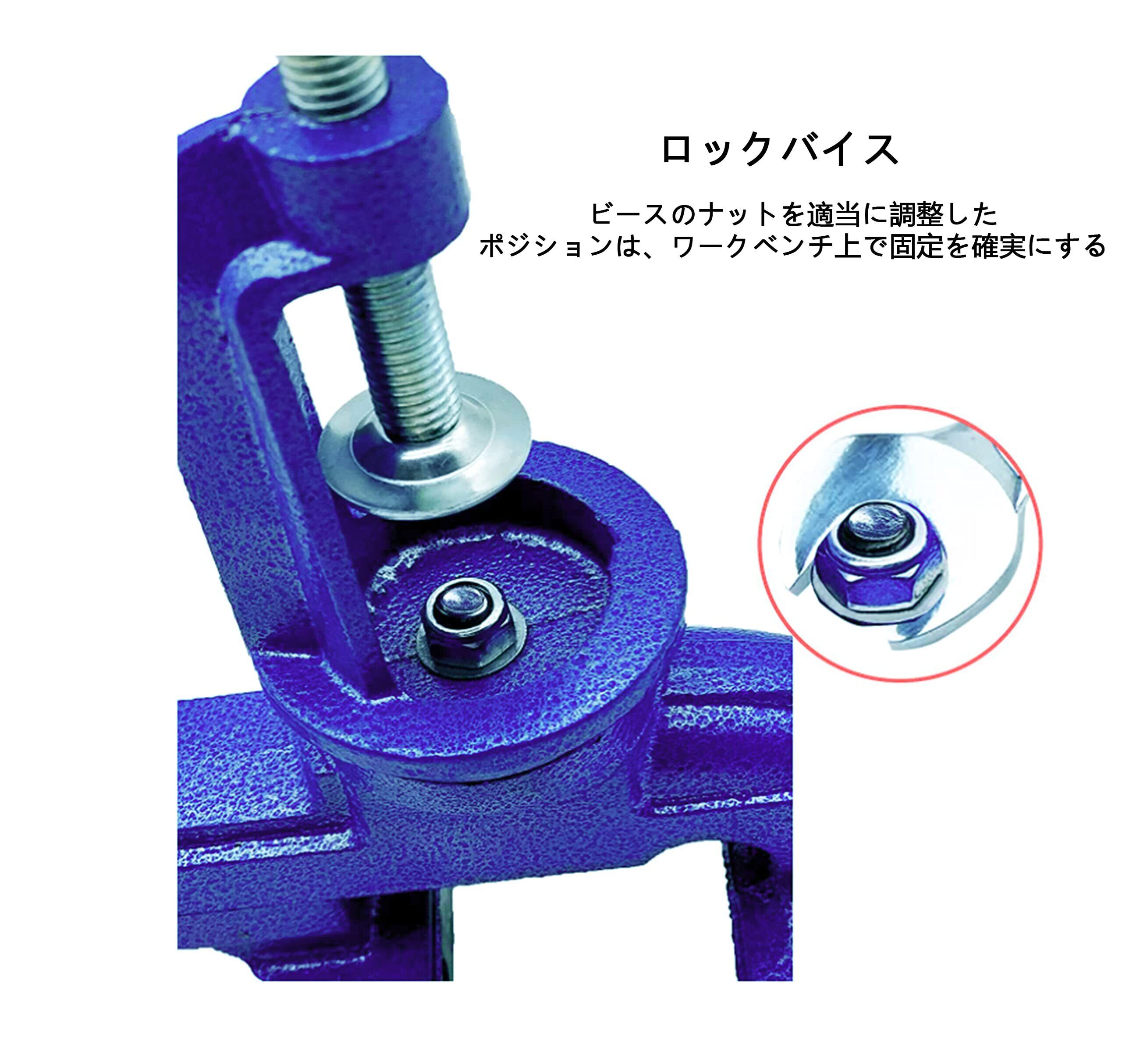 良い品質: このベンチバイスは高級な鋳鋼とクロムメッキのスピンドルとナットで作りました。長期耐久性と重いグリップ力を持ちます。クランプに焼き入れ処理をして、硬度と強度を高めます。クランプのグリップ力は300kgです。