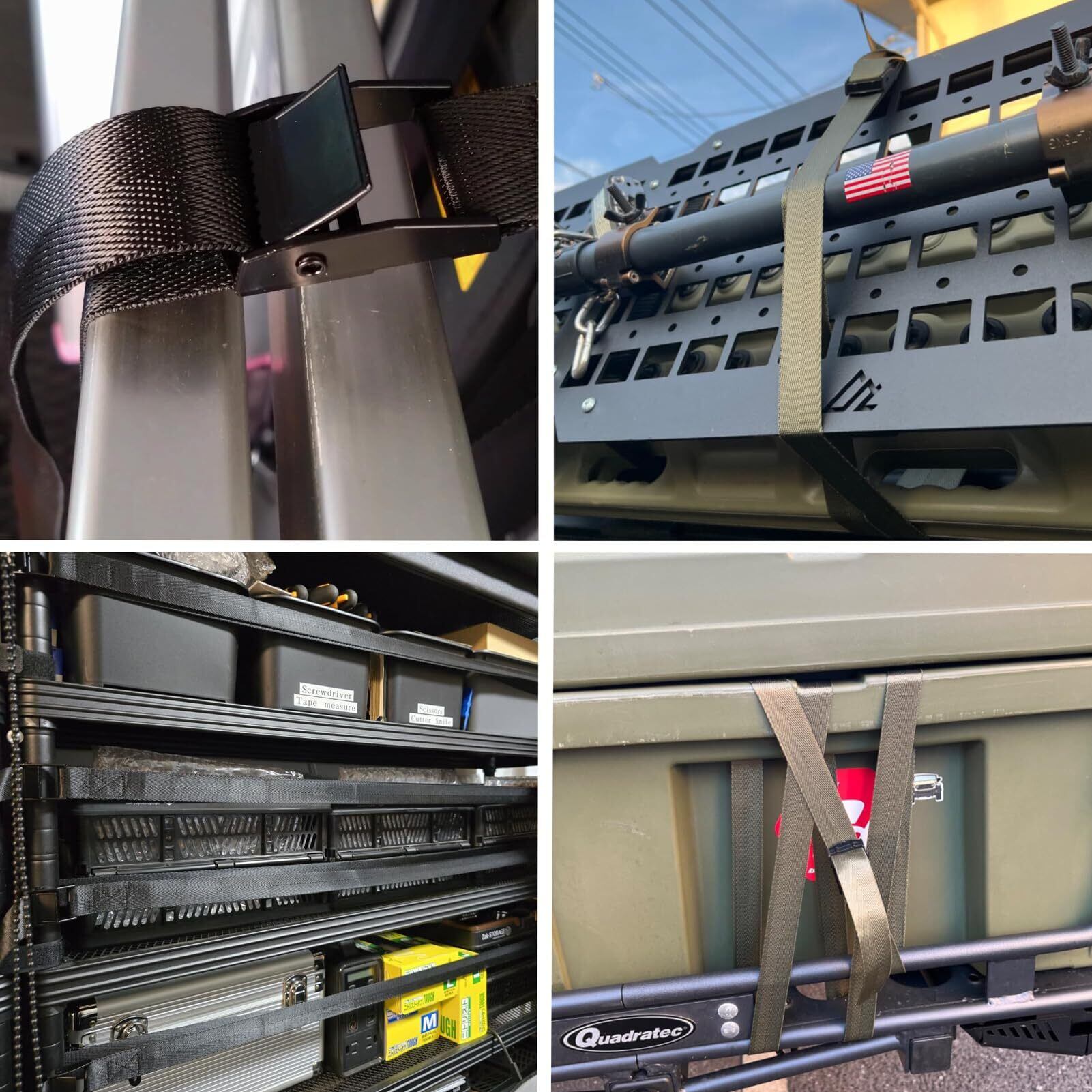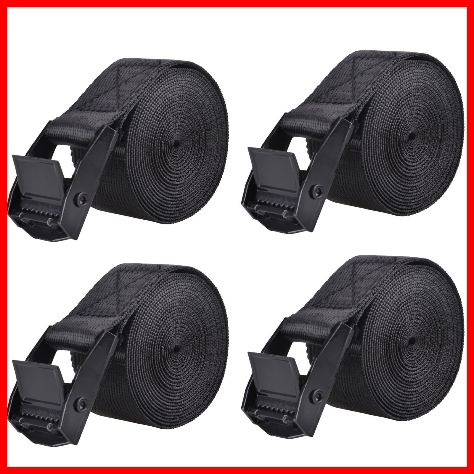 Azarxis 荷締めベルト 固定ベルト 荷締め ベルト 2m 3m 5m 荷物ベルト ラッシングベルト 荷締バンド 締付 運搬 梱包 積載 荷締機 荷台 荷崩れ防止 地震災害対策 幅25mm 4本セット(A - ブラック, 2m)