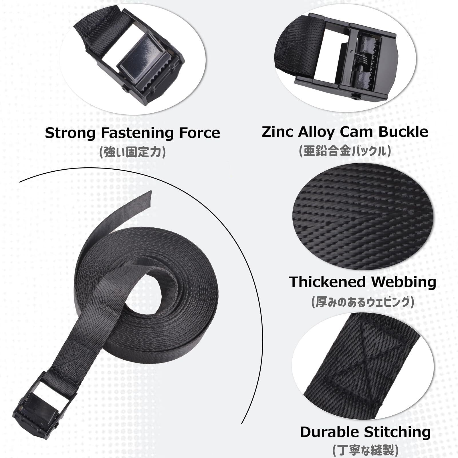【新着商品】Azarxis 荷締めベルト 固定ベルト 荷締め ベルト 2m 3m 5m 荷物ベルト ラッシングベルト 荷締バンド 締付 運搬 梱包 積載 荷締機 荷台 荷崩れ防止 地震災害対策 幅25mm 4本セット(A - ブラック, 2m) | Cherry Blossoms