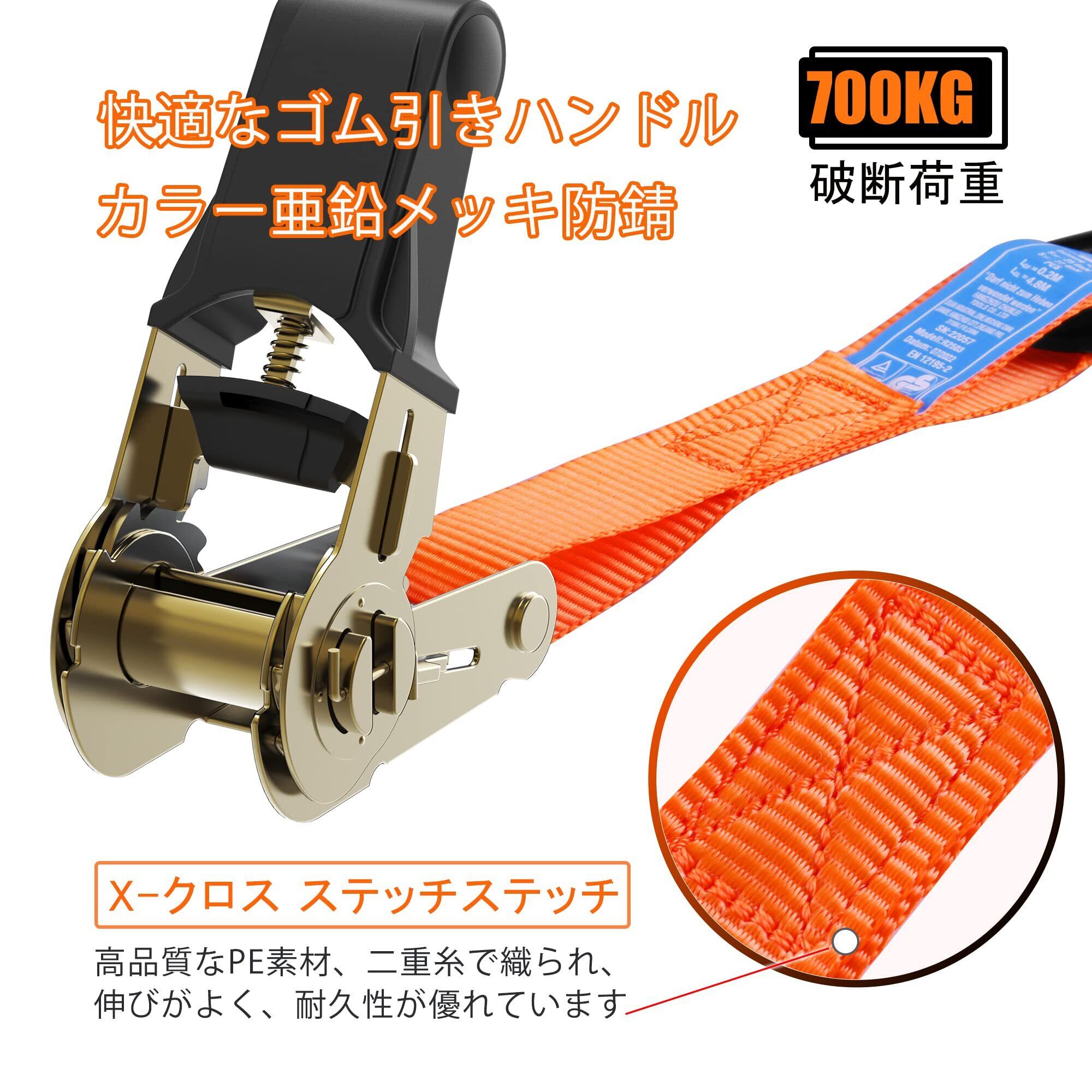 【新着商品】AWELCRAFT ラチェット式タイダウンベルト 破断荷重700kg GS認証取得済み 4本セット 長さ2M 荷締めベルト 幅25mm ラッシングベルト 荷締機 固定ベルト 固定バンド 締付固定 多用途 引越し 運搬用 オレンジ | Cherry Blossoms