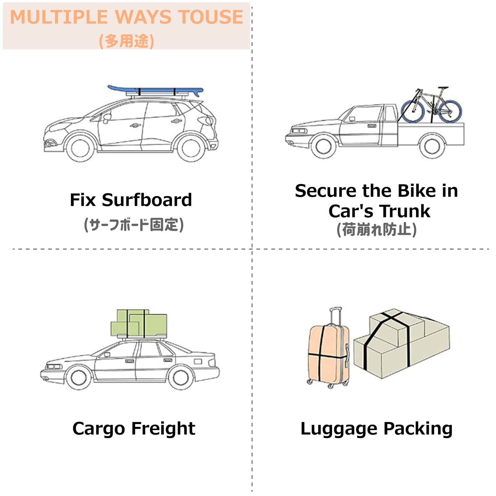 【応用】荷物の固定/運搬、引っ越し、倉庫内/商品棚の荷崩れ防止、台風、地震、豪雨などの災害対策グッズです
