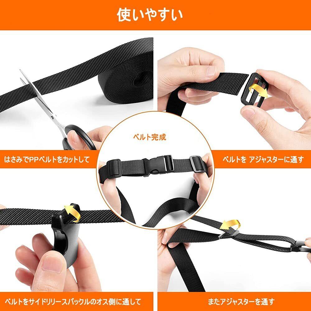 【パッケージ内容】テープアジャスター*10個+25mm幅のPPベルト*10m+サイドリリースバックル*10個