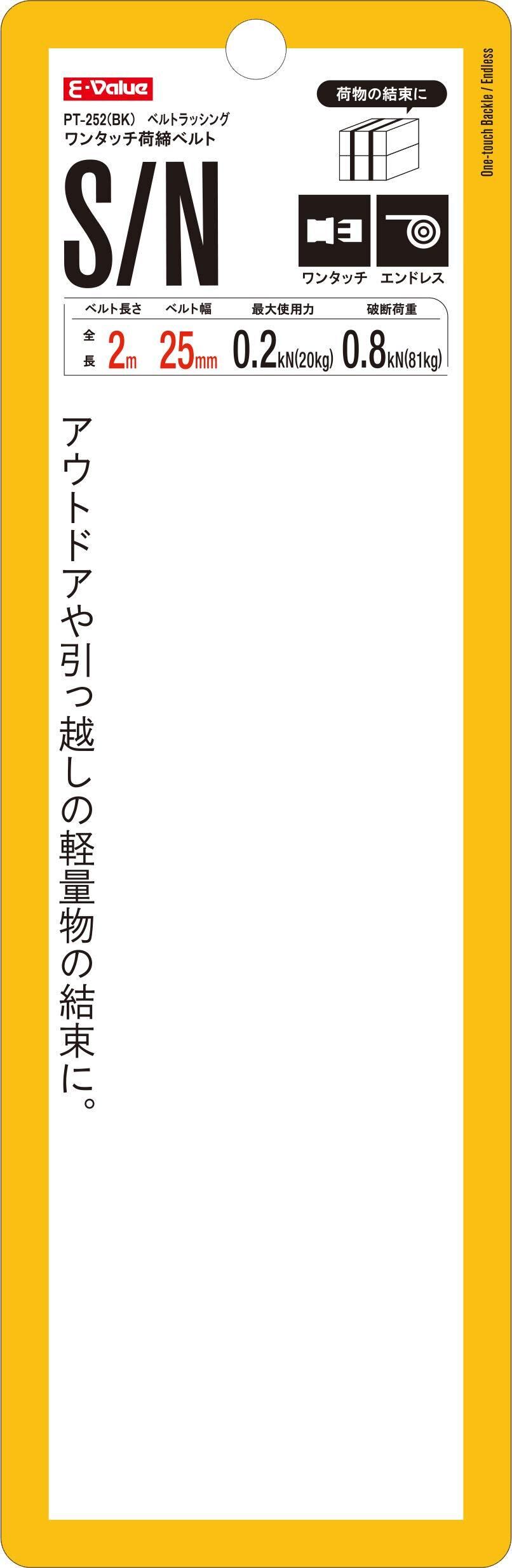イーバリュー(E-Value) ワンタッチ荷締ベルト バックル式 長さ2m 幅25mmブラック PT-252(BK)